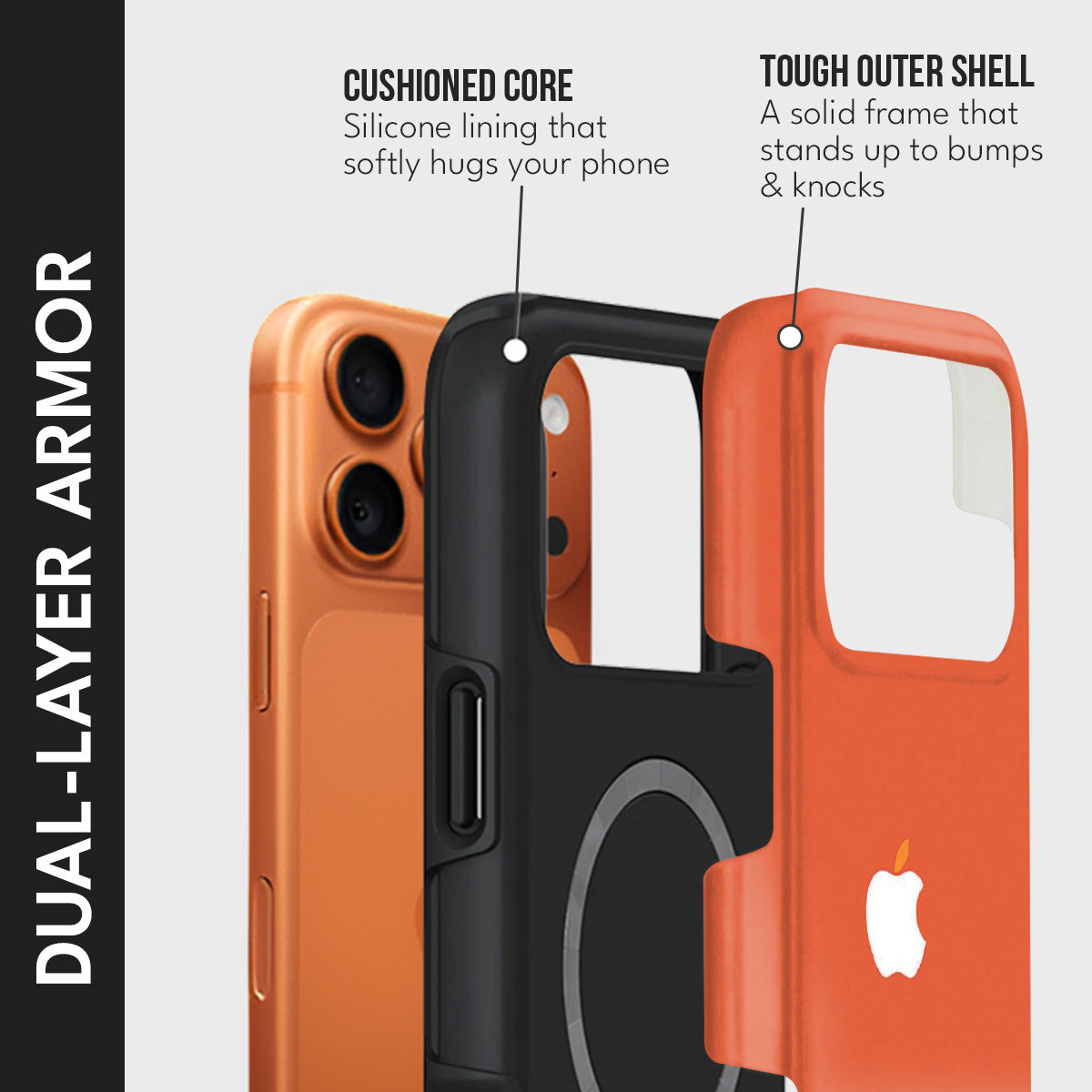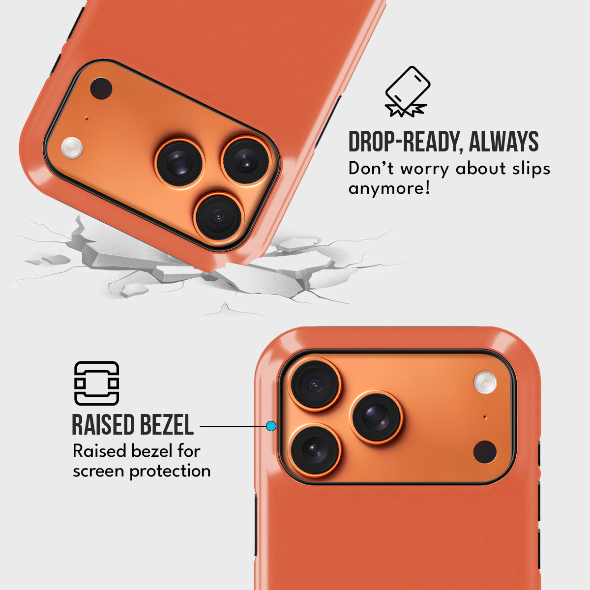 The Amber Surge case radiates warmth and confidence through its vivid orange finish — a perfect balance of elegance and vitality. Its smooth, matte texture gives a premium touch, while the vibrant tone captures the essence of unstoppable momentum.