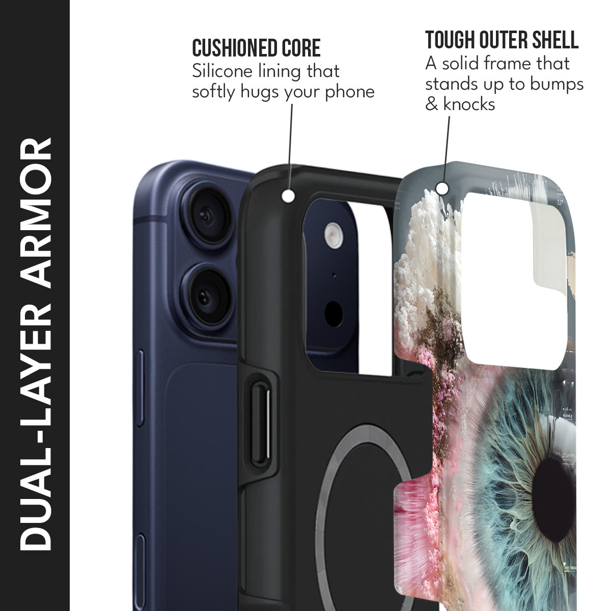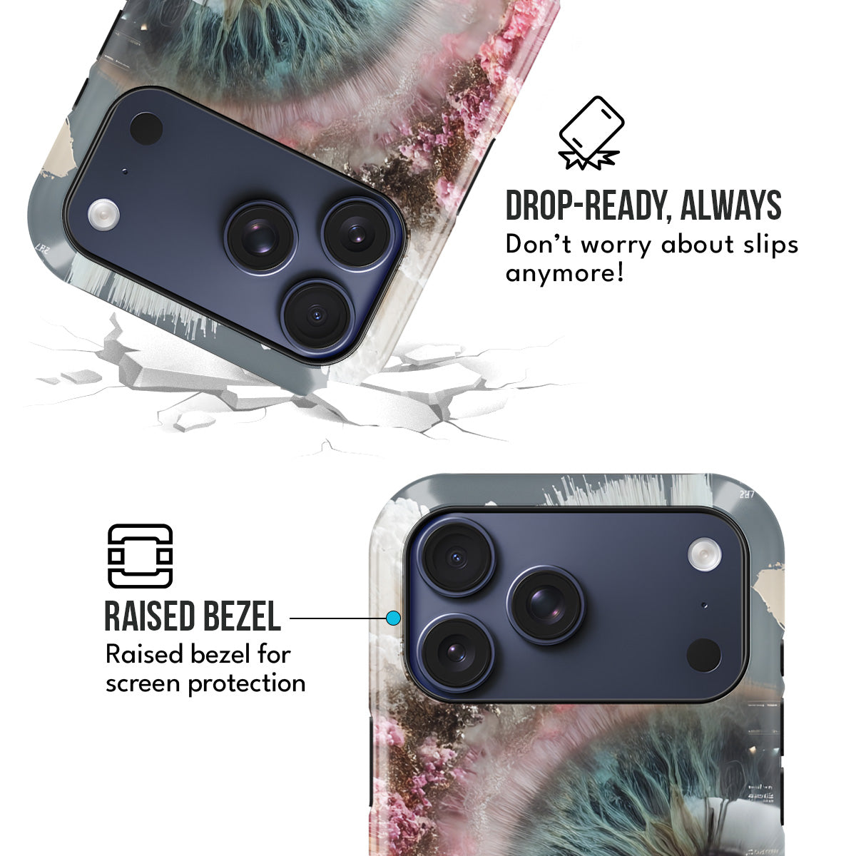 Step into a world of surreal beauty with the Dream Vision Case, where art and mysticism meet. Featuring a striking eye design infused with crystalline textures and dreamlike colors, this case symbolizes clarity, awareness, and imagination. It’s more than just a phone cover – it’s a statement of vision and creativity.