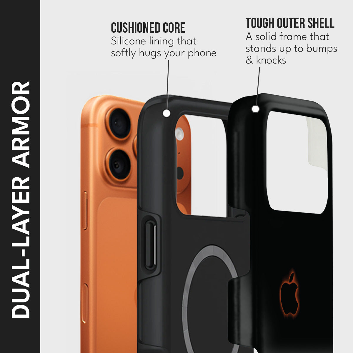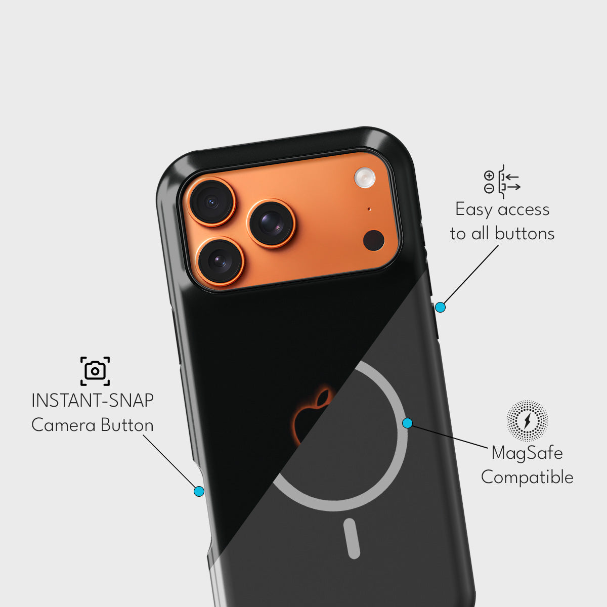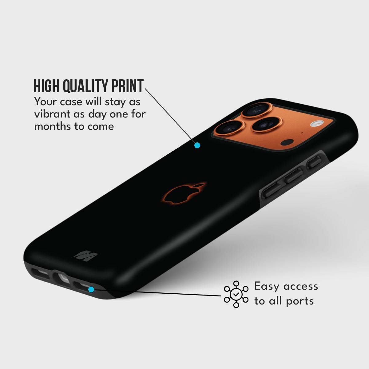 The Eclipse Ember case captures the raw beauty of contrast — a deep matte black surface ignited by a glowing ember-like Apple logo at its heart. The design evokes the fleeting brilliance of an eclipse, where light and shadow collide in perfect balance.