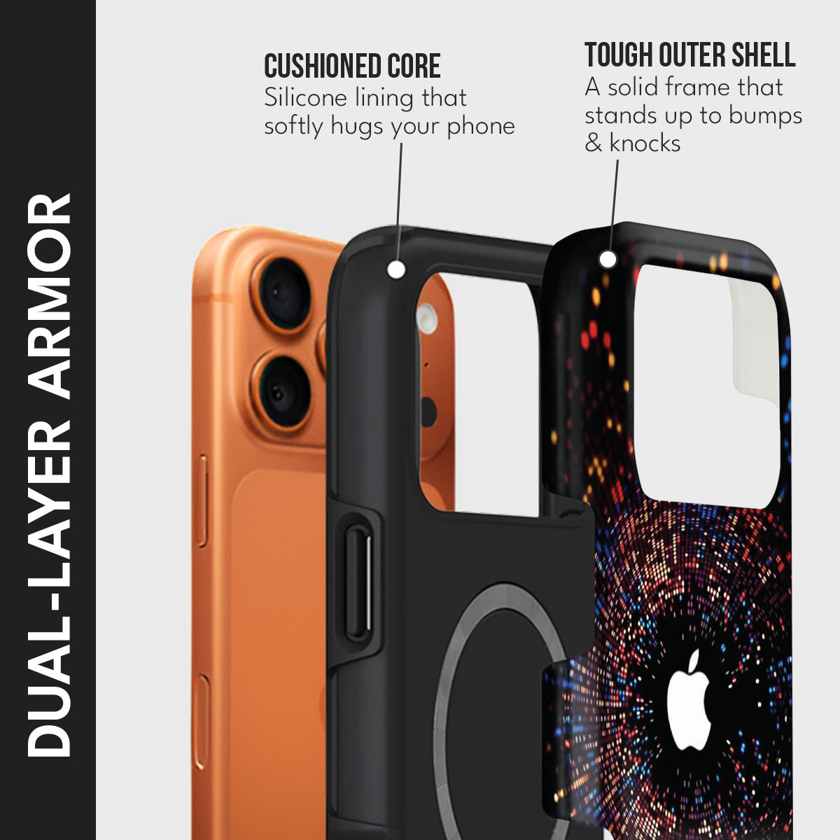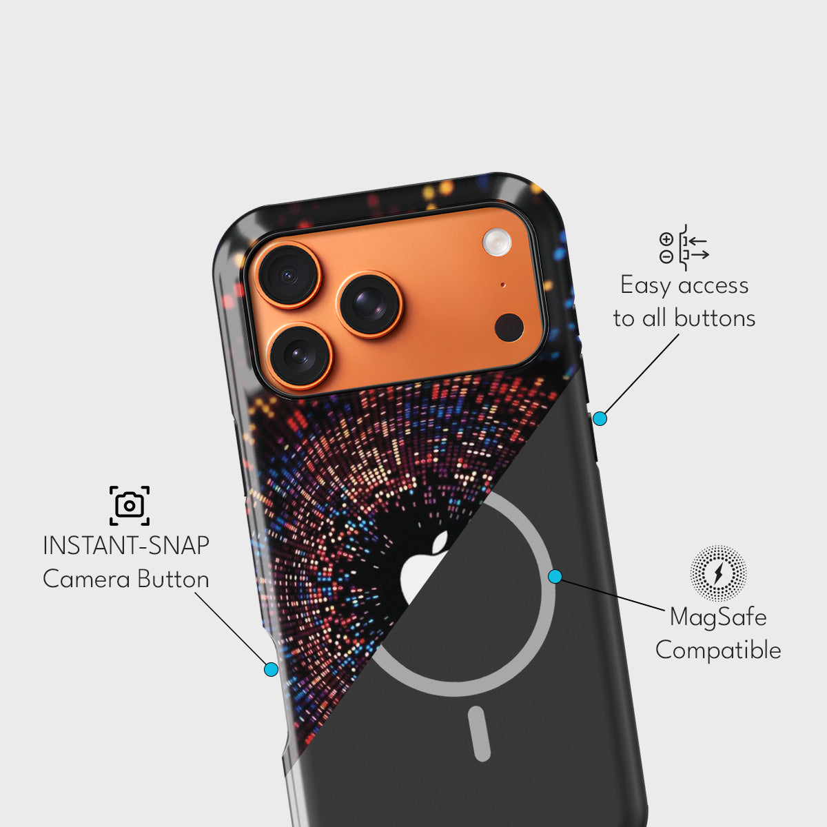 Step into the future of design with Quantum Spin, a masterpiece of motion, light, and precision. This case captures the mesmerizing rhythm of energy in motion — a swirling galaxy of color that radiates from the core, representing the pulse of innovation and life itself.