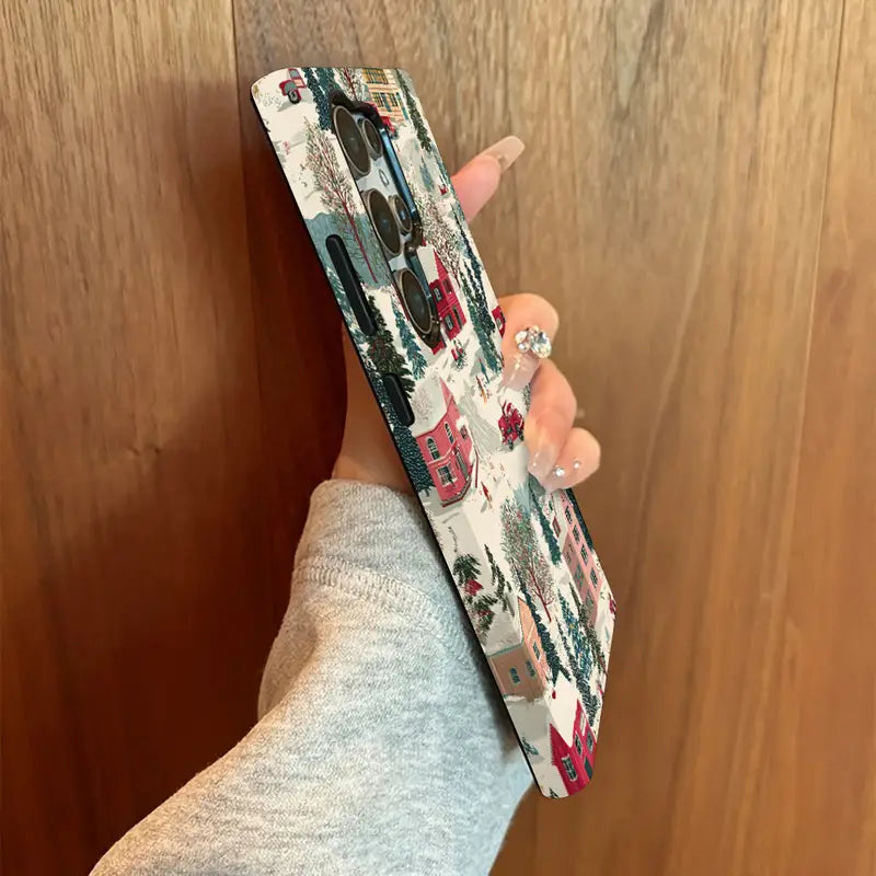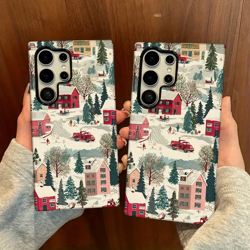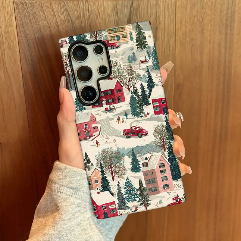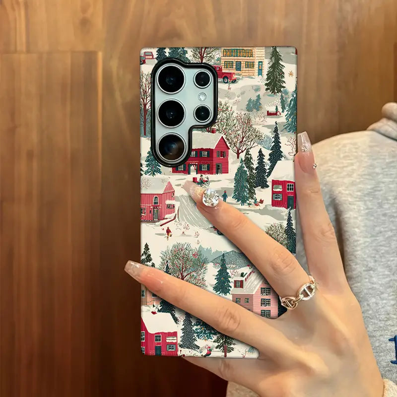 Bring the heartwarming charm of the holidays wherever you go with Frosted Village — a phone case that captures the beauty of a snowy winter wonderland. Featuring a picturesque scene of cozy red cottages, snow-covered trees, and festive cheer, this case radiates the nostalgia and serenity of a perfect holiday morning.