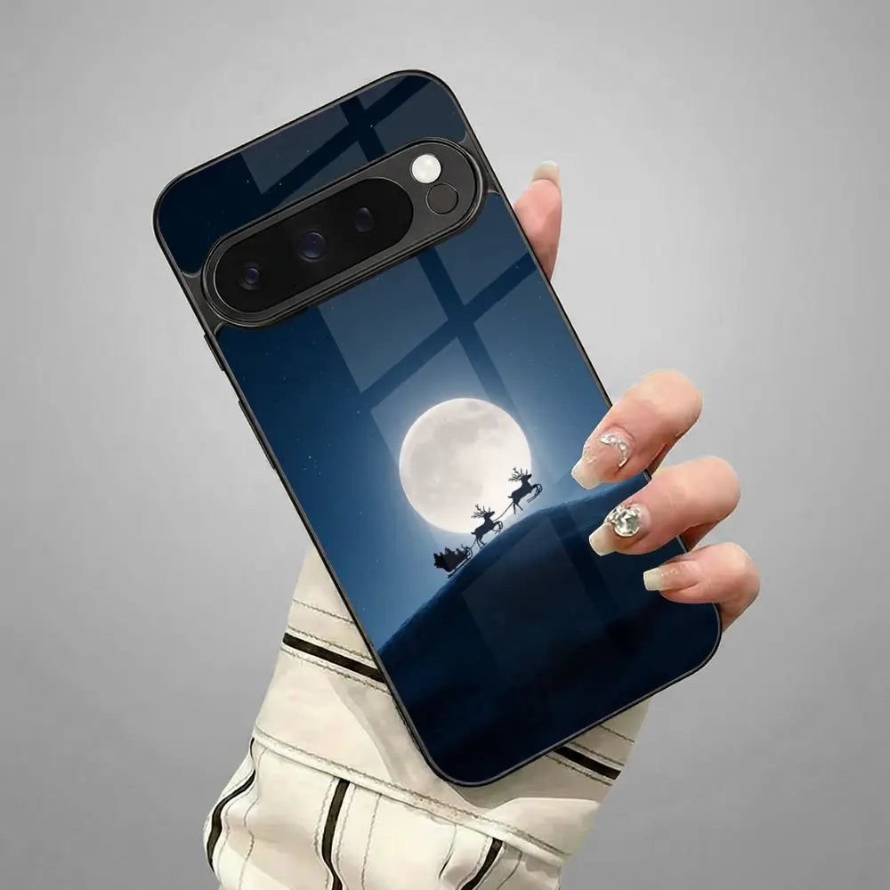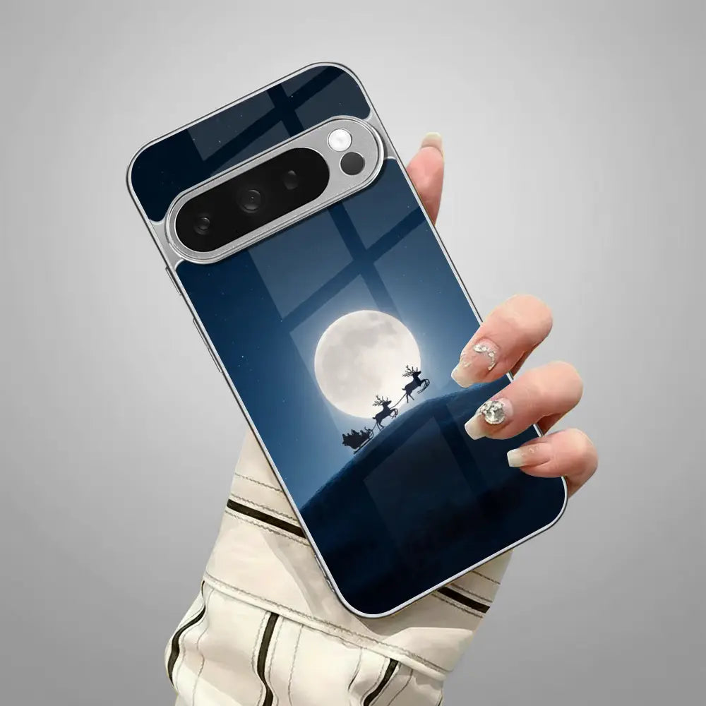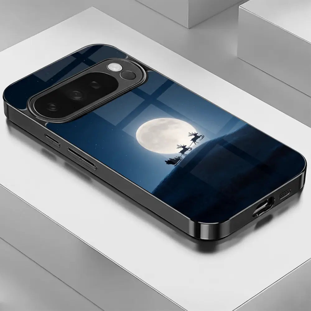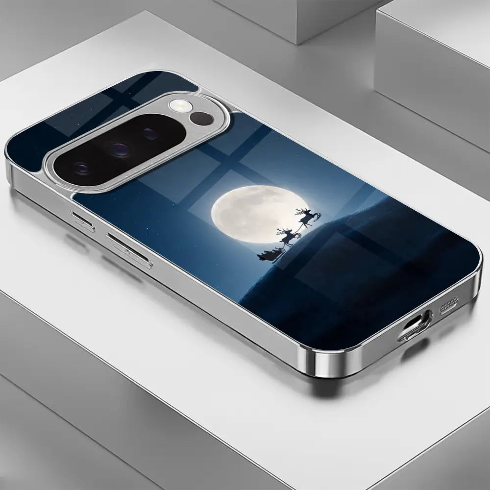 The Celestial Rider Case captures the magic of a moonlit winter night, featuring a serene silhouette of Santa’s sleigh gliding across a glowing full moon. Set against a deep, starry backdrop, the design blends festive charm with celestial elegance.