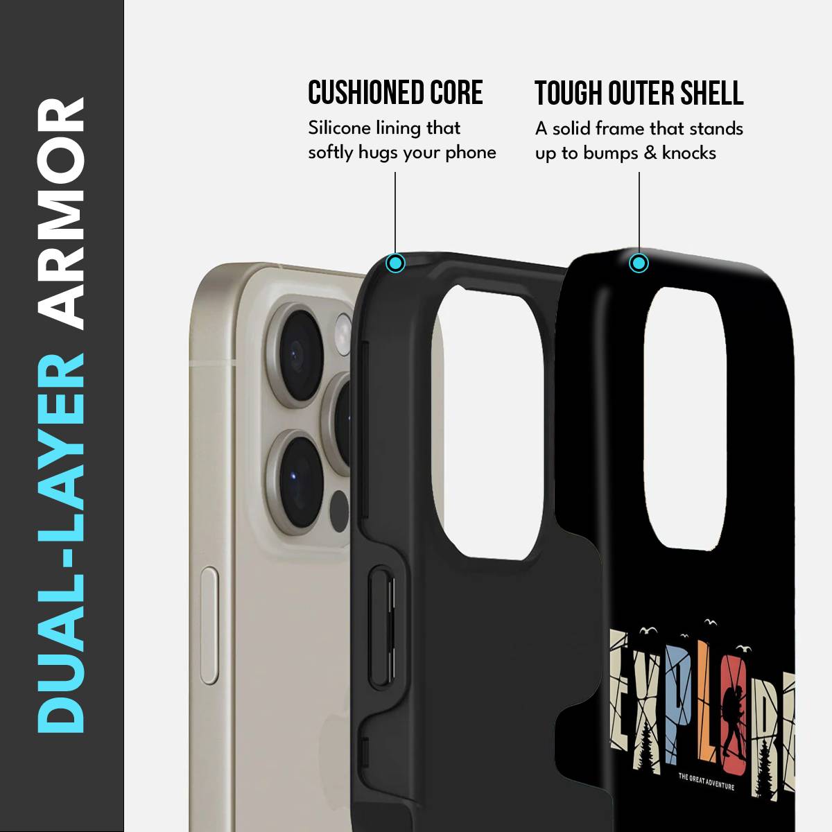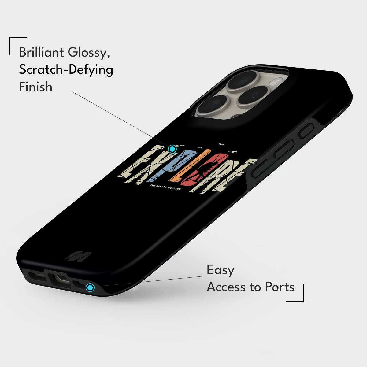 Step into the wild every time you pick up your phone with the Adventure Explore Case. Designed for true wanderers and dreamers, this case features a bold “EXPLORE” graphic filled with silhouettes of mountains, forests, wildlife, and a lone adventurer—capturing the essence of discovery and freedom.