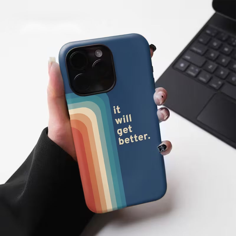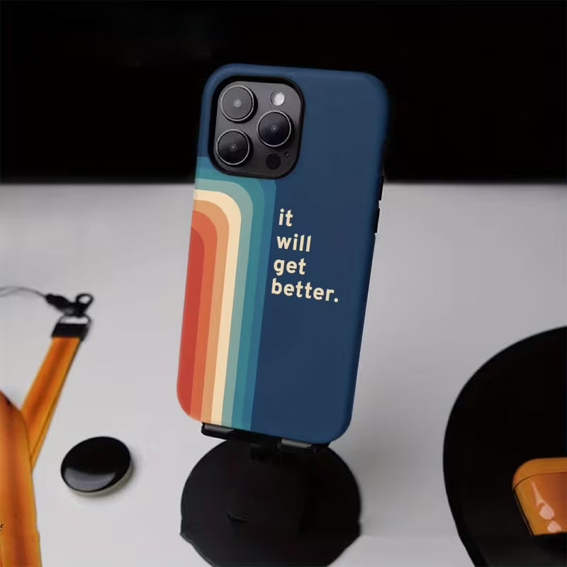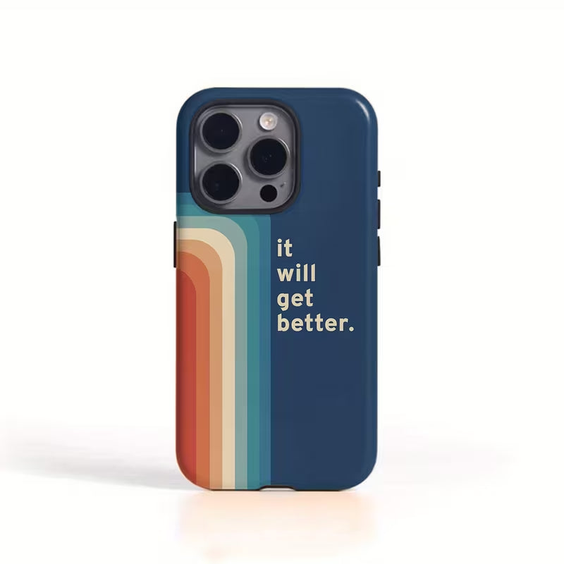 The Better Days Case is a gentle reminder you can carry every day—stylish, uplifting, and crafted for comfort. Featuring a soothing blue backdrop with warm retro stripes and the affirming phrase “it will get better,” this case blends positivity with modern minimalism.
