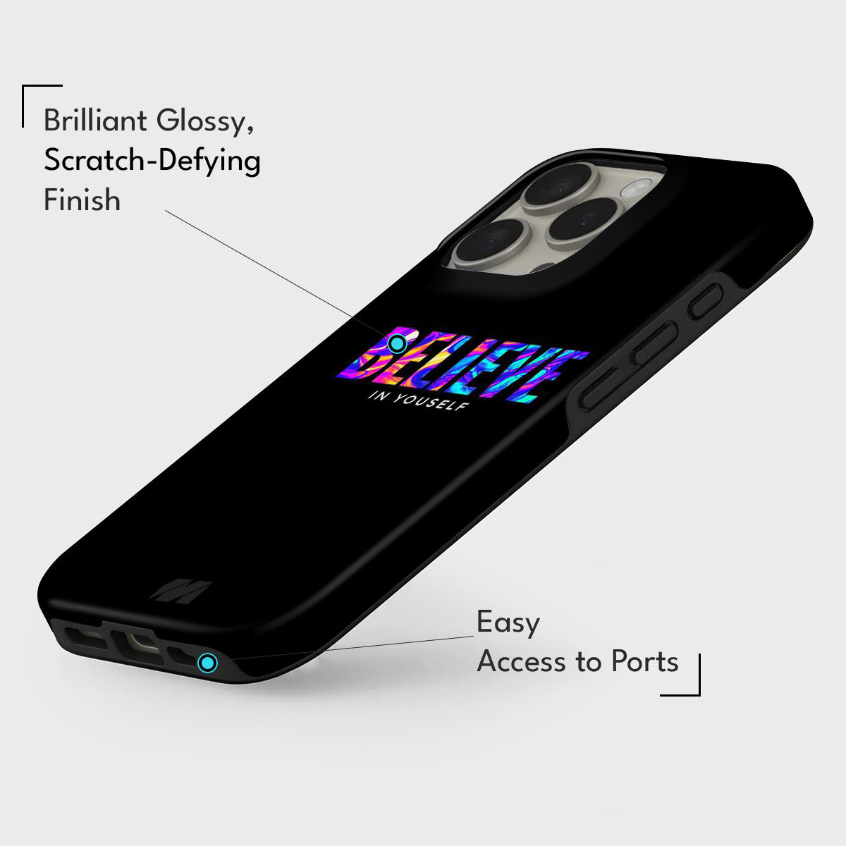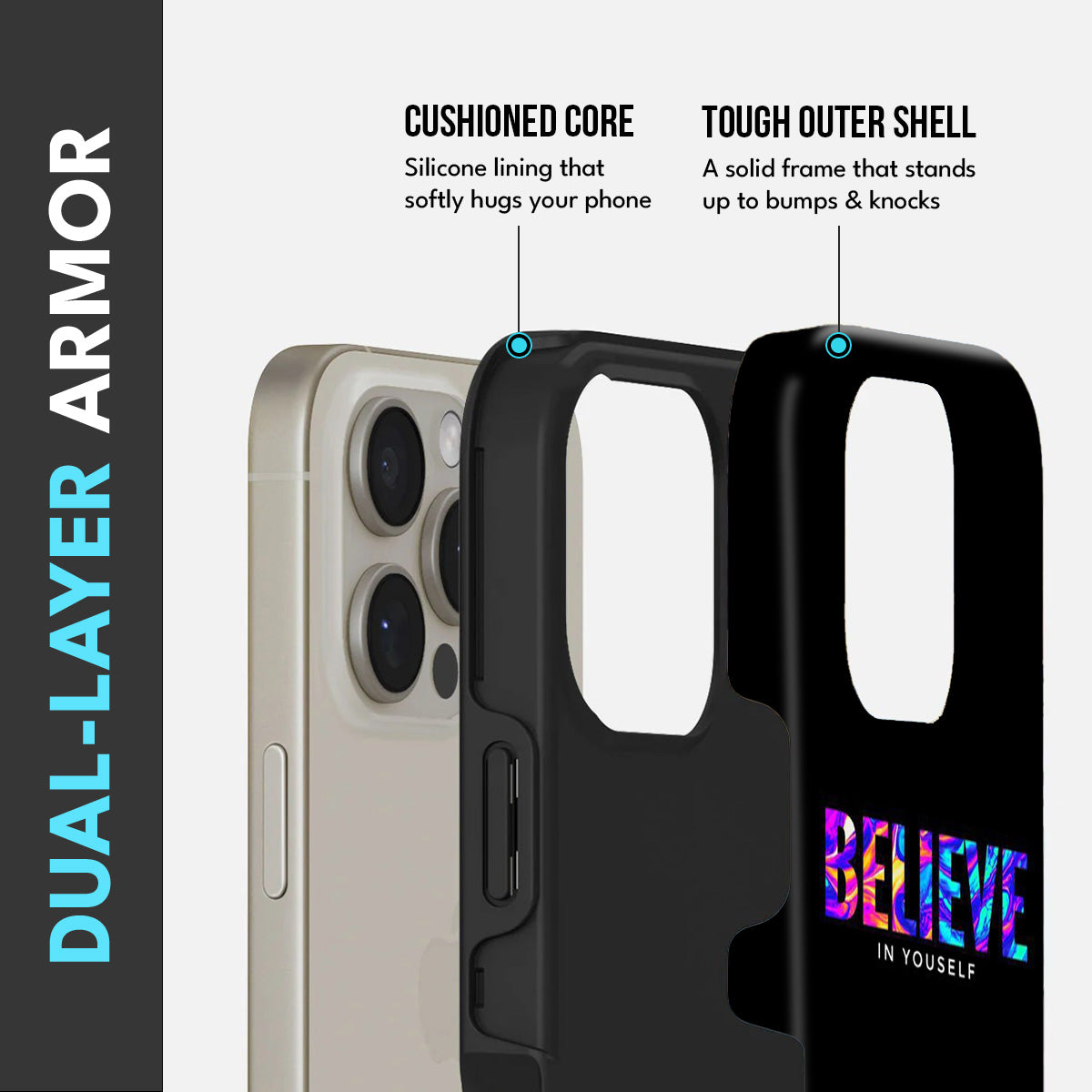 Step into your power with Cosmic Confidence, the phone case designed to remind you that everything you need is already within you. Featuring a bold holographic BELIEVE IN YOURSELF graphic that shifts and shimmers with every angle, this case turns your device into a statement of strength, self-trust, and unstoppable energy.