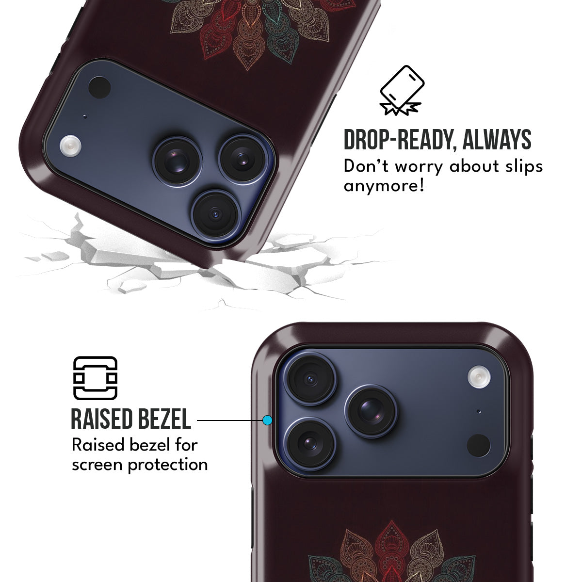 • Raised Bezels: Elevated edges safeguard both the screen and the camera.