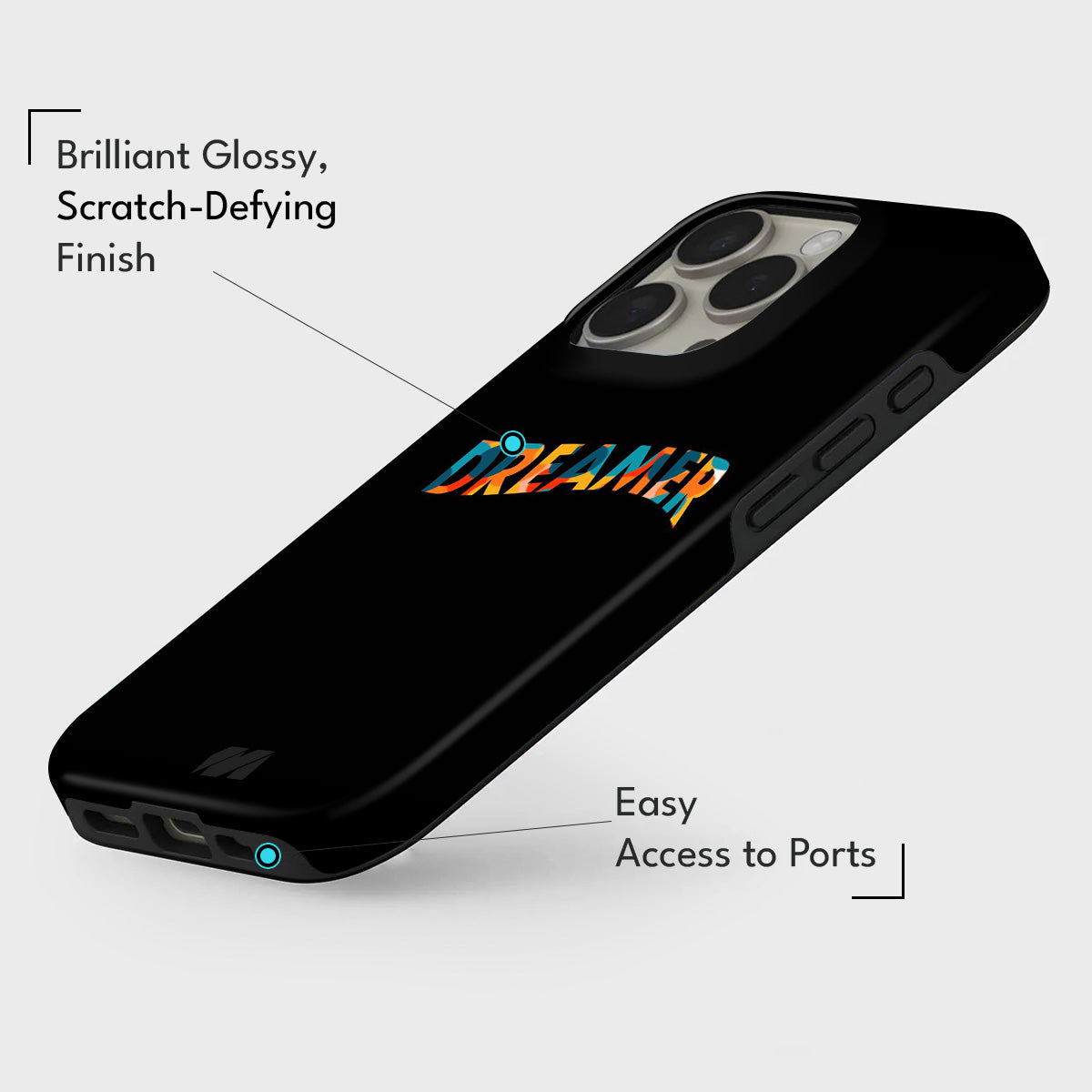 Step into a world where imagination leads the way with the Dream Mode Case. Bold, colorful typography on a sleek black background creates a striking contrast that celebrates creativity, ambition, and the joy of dreaming big. This case is designed for those who chase possibilities, think beyond limits, and live life with vibrant intention.