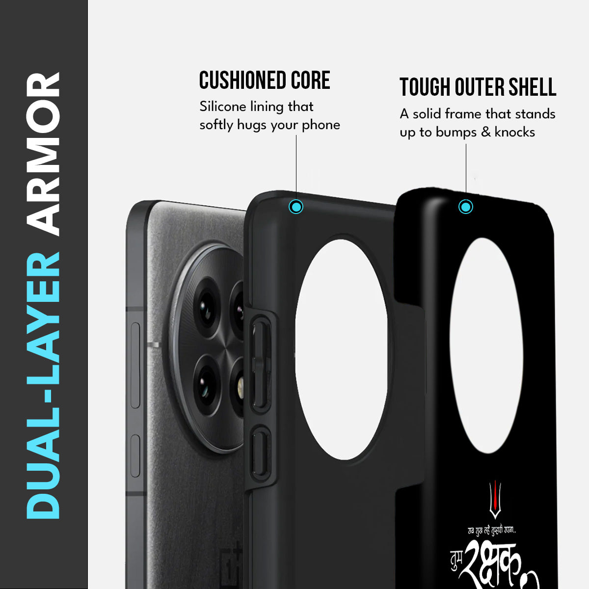 Embrace strength, devotion, and divine protection with the Fearless Faith case. Designed with a bold black aesthetic and sacred typography inspired by Lord Shiva, this case is a reminder that fear dissolves where faith begins. The central Trishul symbol reflects power and spiritual grounding, while the elegant Devanagari script adds an authentic devotional touch.