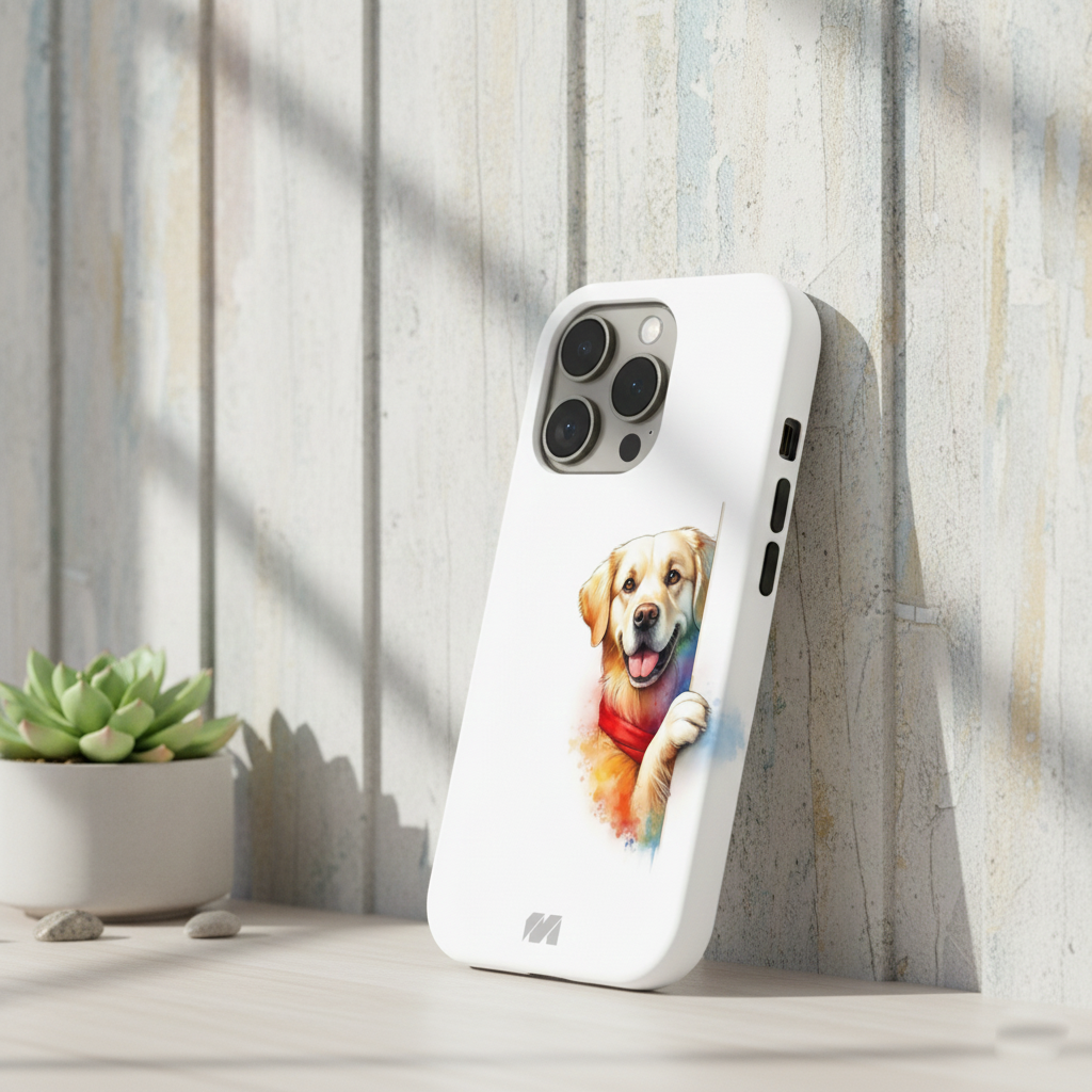 A vibrant, heartwarming case featuring a cheerful pup peeking in with pure joy. Designed for dog lovers, it blends adorable art with reliable daily protection, adding a burst of positivity to your everyday carry.