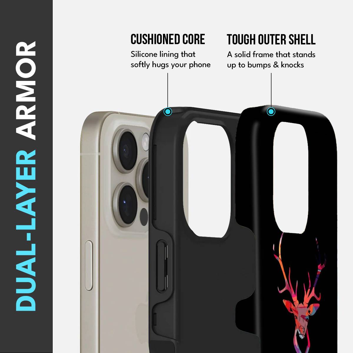 - Dual-Layer Protection: The phone case features silicon cushioning inside and a durable PC exterior outside.