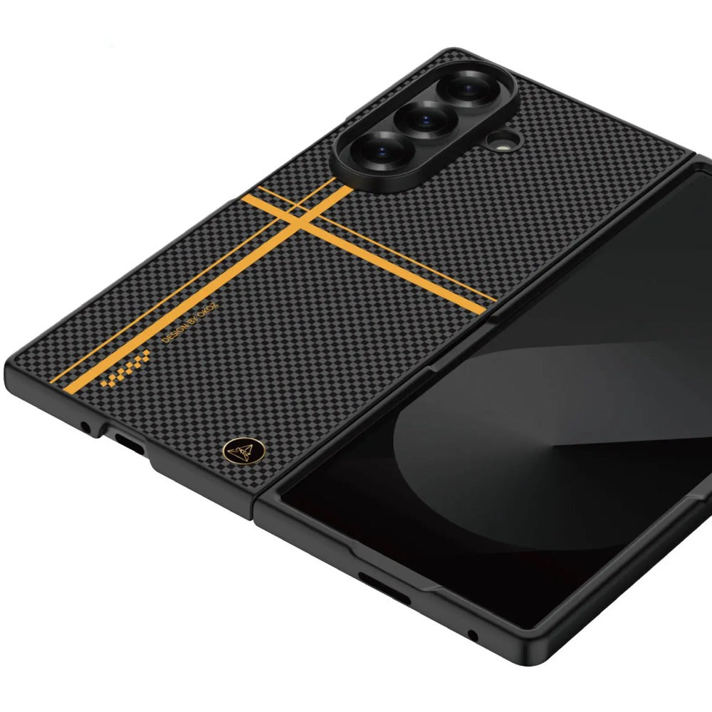 Elevate your device’s aesthetics and protection with the CrissCore Weave Case — a premium fusion of carbon-textured design and precision-crafted elegance. The dynamic golden cross-line detailing over a woven matrix pattern adds a bold, high-performance feel, while the slim-fit construction ensures everyday functionality without bulk. Ideal for those who crave a mix of style, strength, and sophistication.