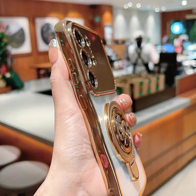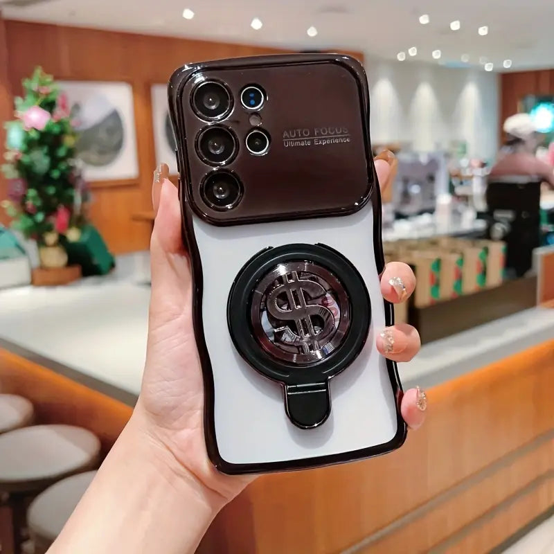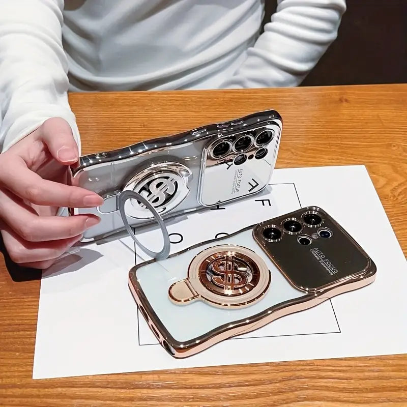 Introducing the Dollar Spin Case , a fusion of luxury and functionality. This case features a rotating gold coin design encased within a transparent electroplated shell, offering both aesthetic appeal and robust protection.