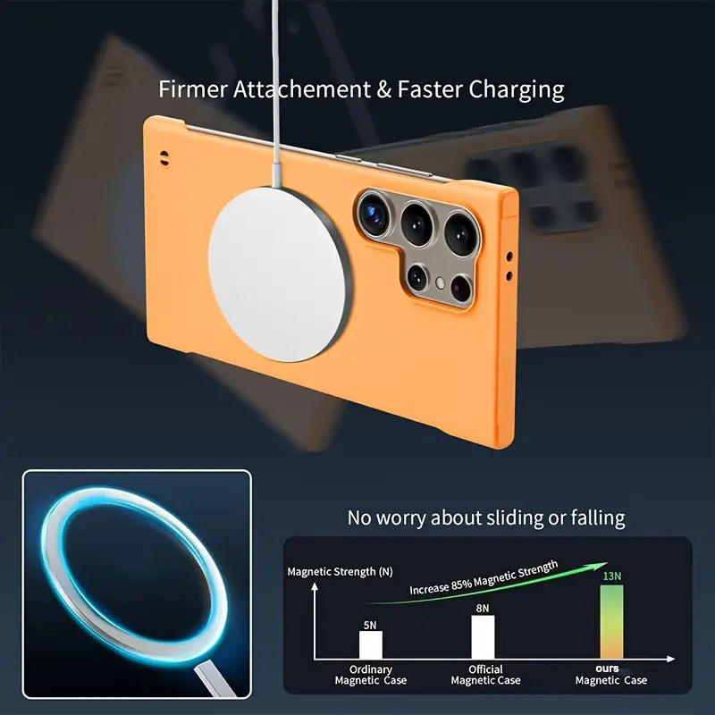 Introducing the Magna Guard Borderless Magnetic Case, designed exclusively for Samsung devices, offering a seamless blend of style, protection, and convenience. Crafted with precision and innovation, this case redefines the standard for smartphone protection.
