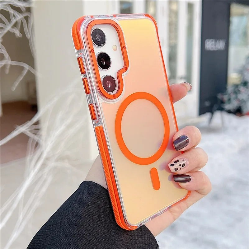 Brighten your everyday with the 360 Shield Aurora Gradient Case—where warm daylight tones meet sleek modern design. Crafted with a crystal-clear body and radiant glow accents, this case enhances your phone’s natural beauty while delivering reliable protection and magnetic convenience.