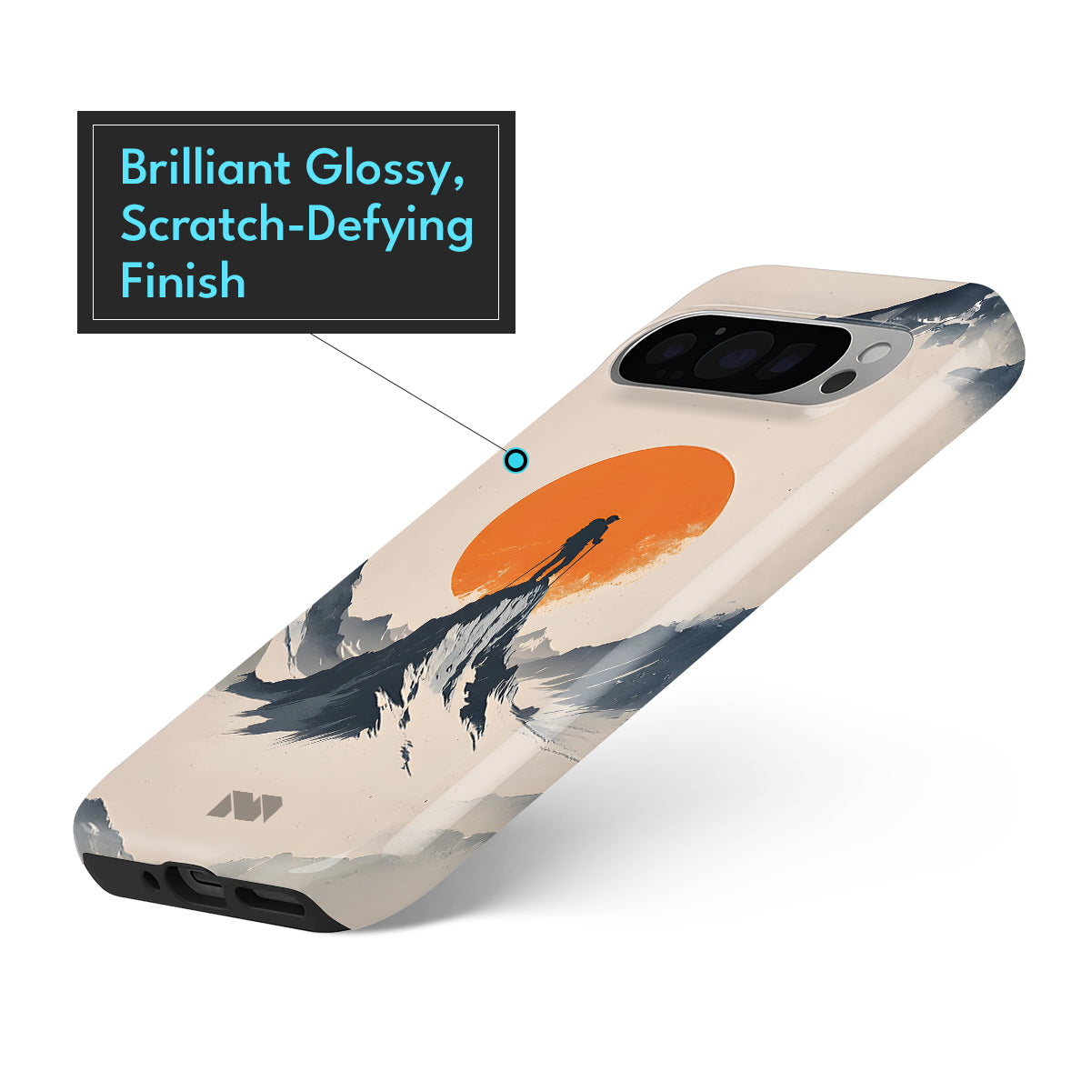 Step into the spirit of adventure with the Horizon Peak Climber case — a design that captures the thrill of reaching new heights. Featuring a bold silhouette of a climber standing atop a rugged peak against a glowing sun, this case symbolizes determination, courage, and the beauty of exploration.