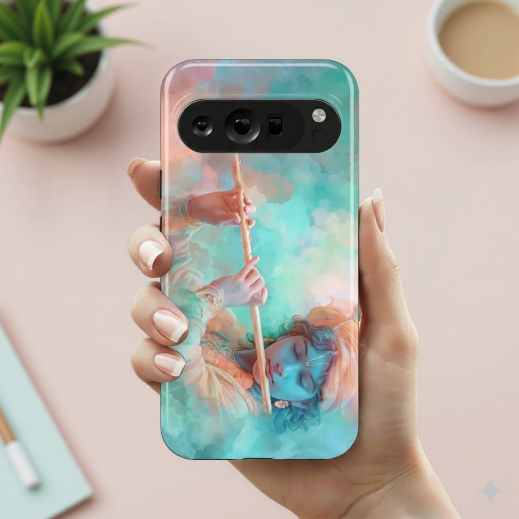 The Inner Raag case is inspired by the quiet magic of music that lives within—soft, devotional, and deeply calming. Featuring a serene, dreamlike portrayal of divine melody, the design evokes peace, balance, and spiritual harmony.