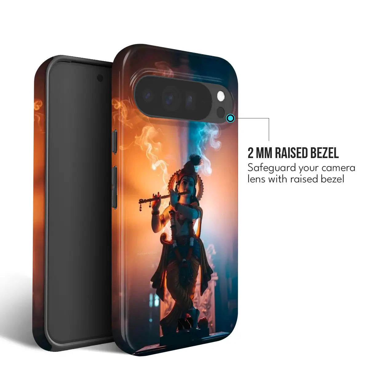 Krishna Breathes captures a sacred moment of stillness—where the divine inhales, and the universe listens. Featuring Lord Krishna poised with the flute, wrapped in flowing smoke and bathed in contrasting hues of blue and warm light, this design symbolizes balance, harmony, and eternal calm.