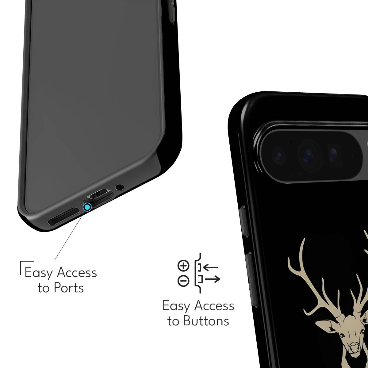 Bring a touch of wilderness elegance to your phone with the Noble Stag case. Featuring a striking minimalist deer emblem set against a deep black background, this design symbolizes strength, wisdom, and quiet power. Crafted with premium materials, the case offers excellent grip, precise cutouts, and durable protection while maintaining a sleek, modern aesthetic.