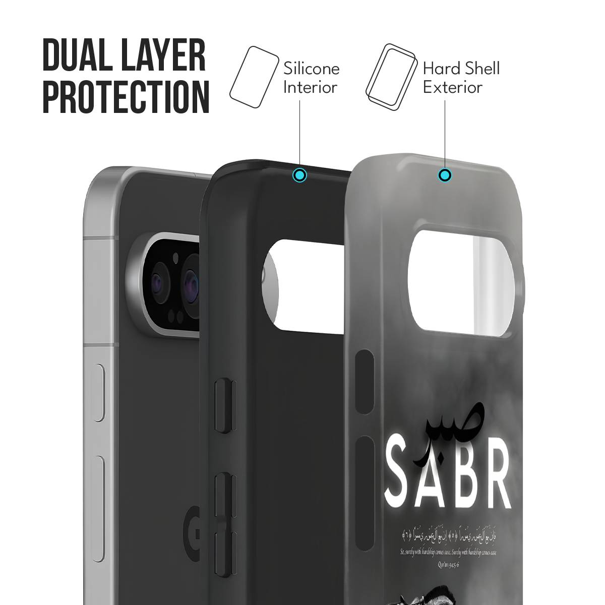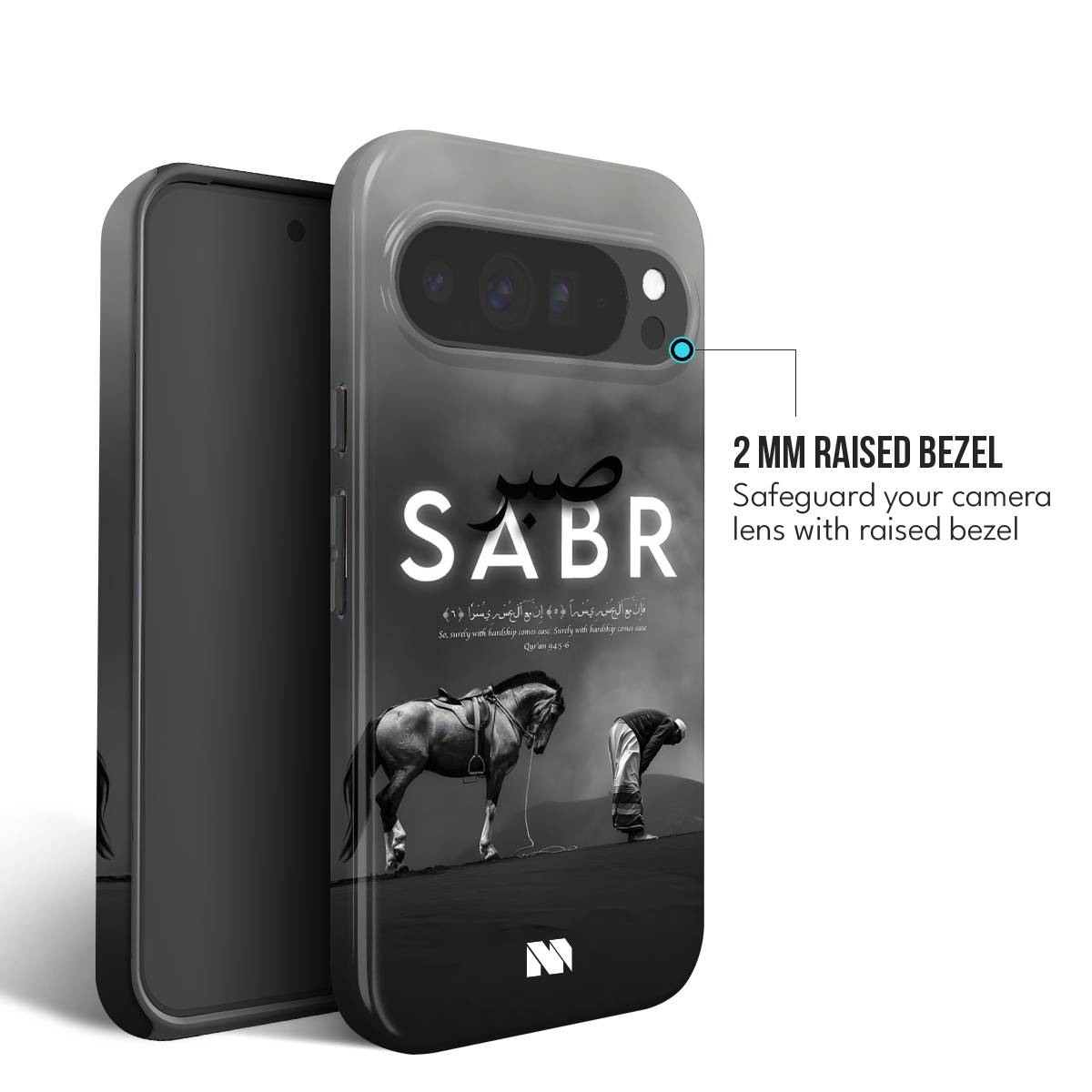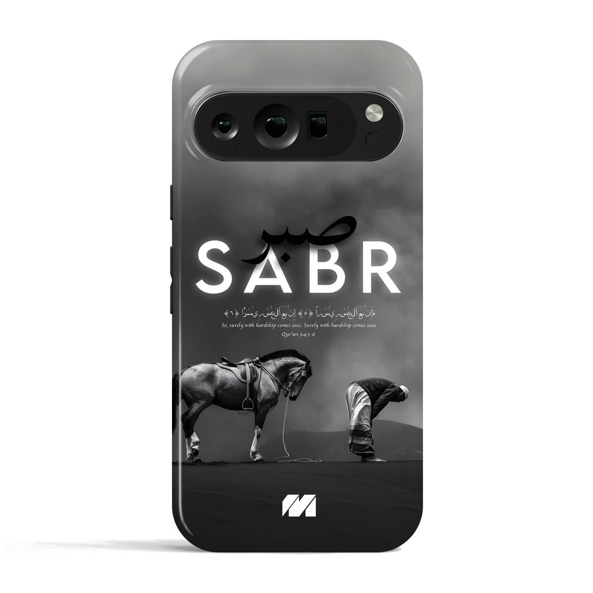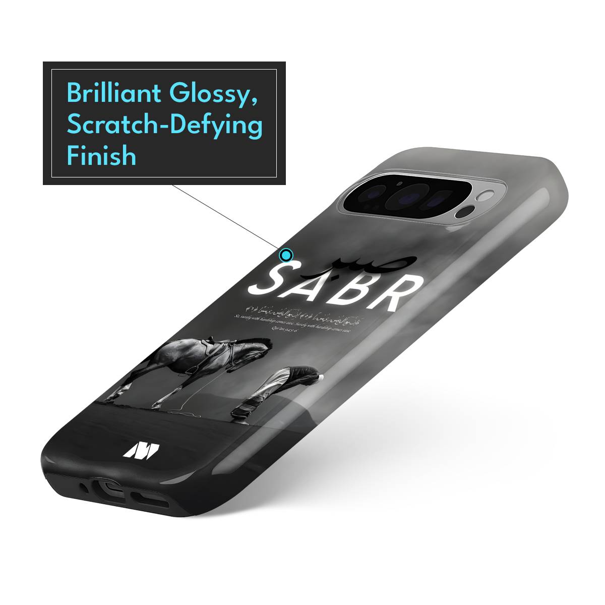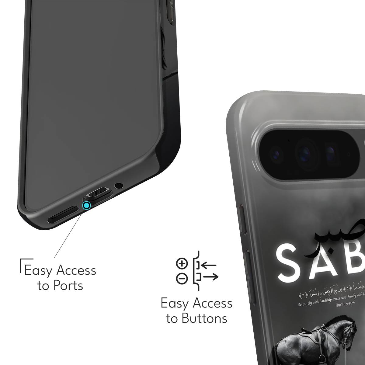 Embody patience, resilience, and unwavering faith with the Sabr Strength Case. Designed in calming monochrome tones, this case features a powerful scene of humility and endurance—a man in prostration beside his loyal horse, accompanied by the Arabic word Sabr and its Quranic reminder.