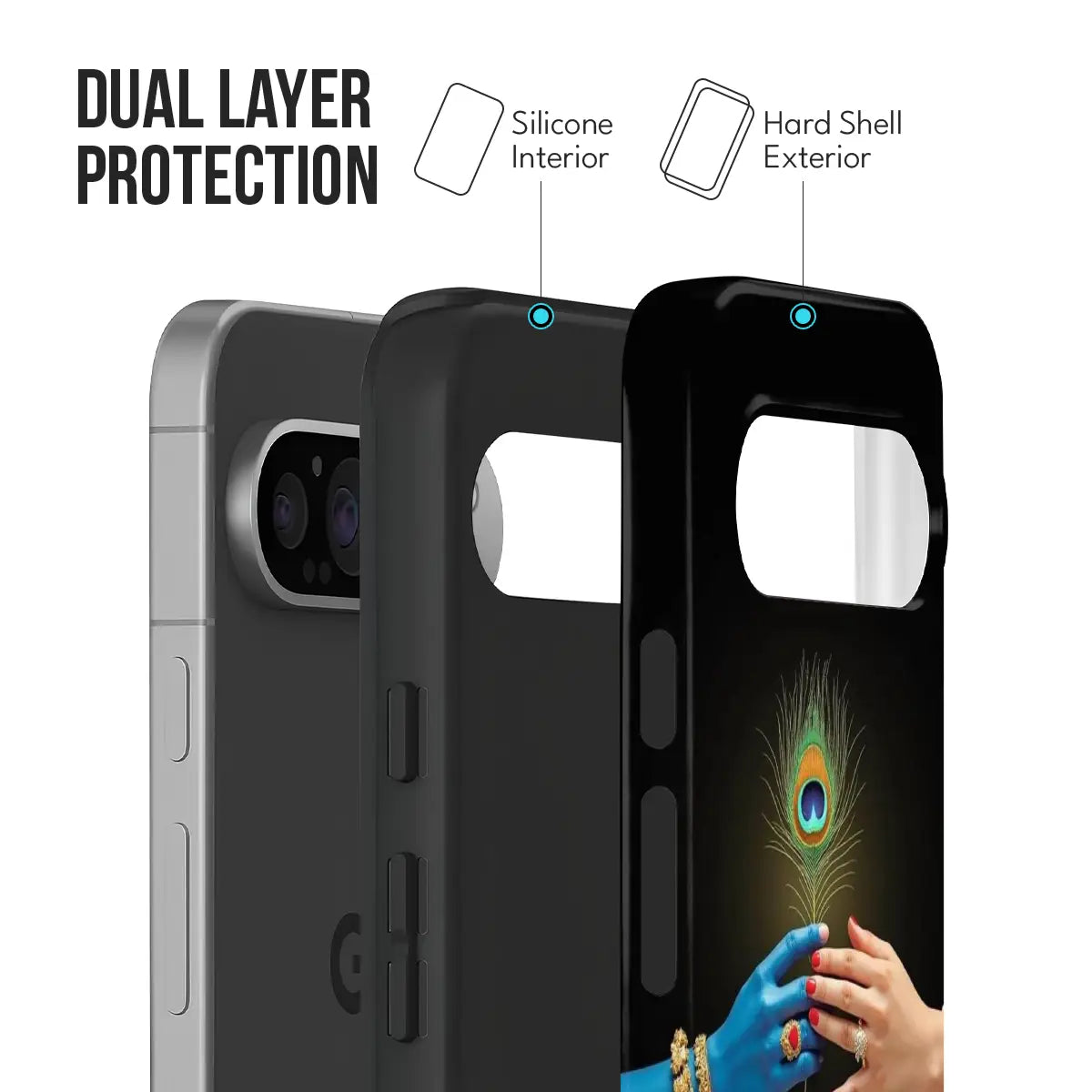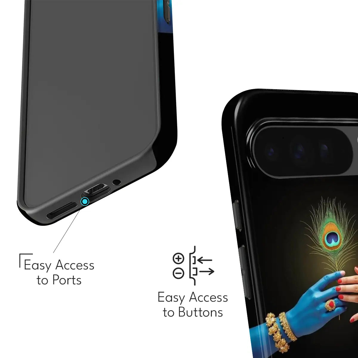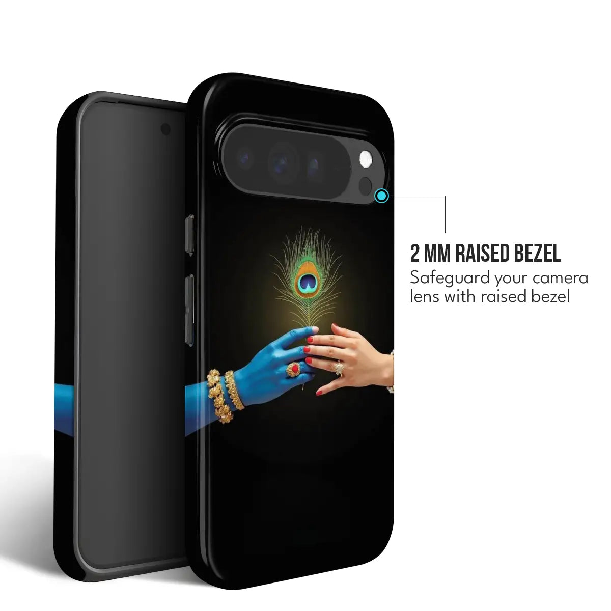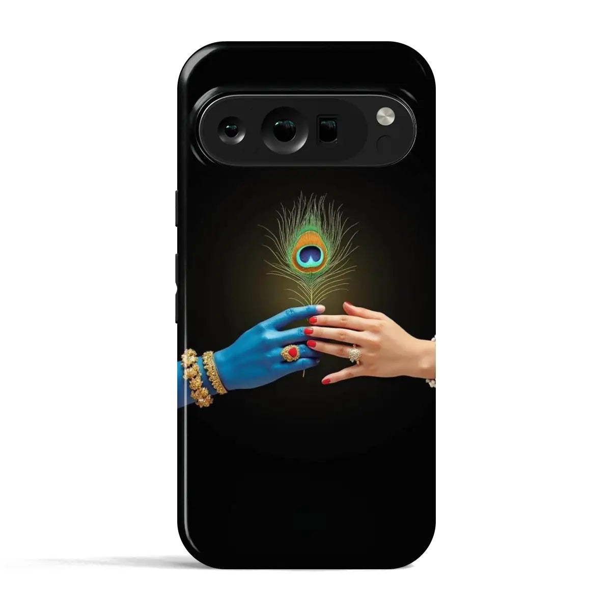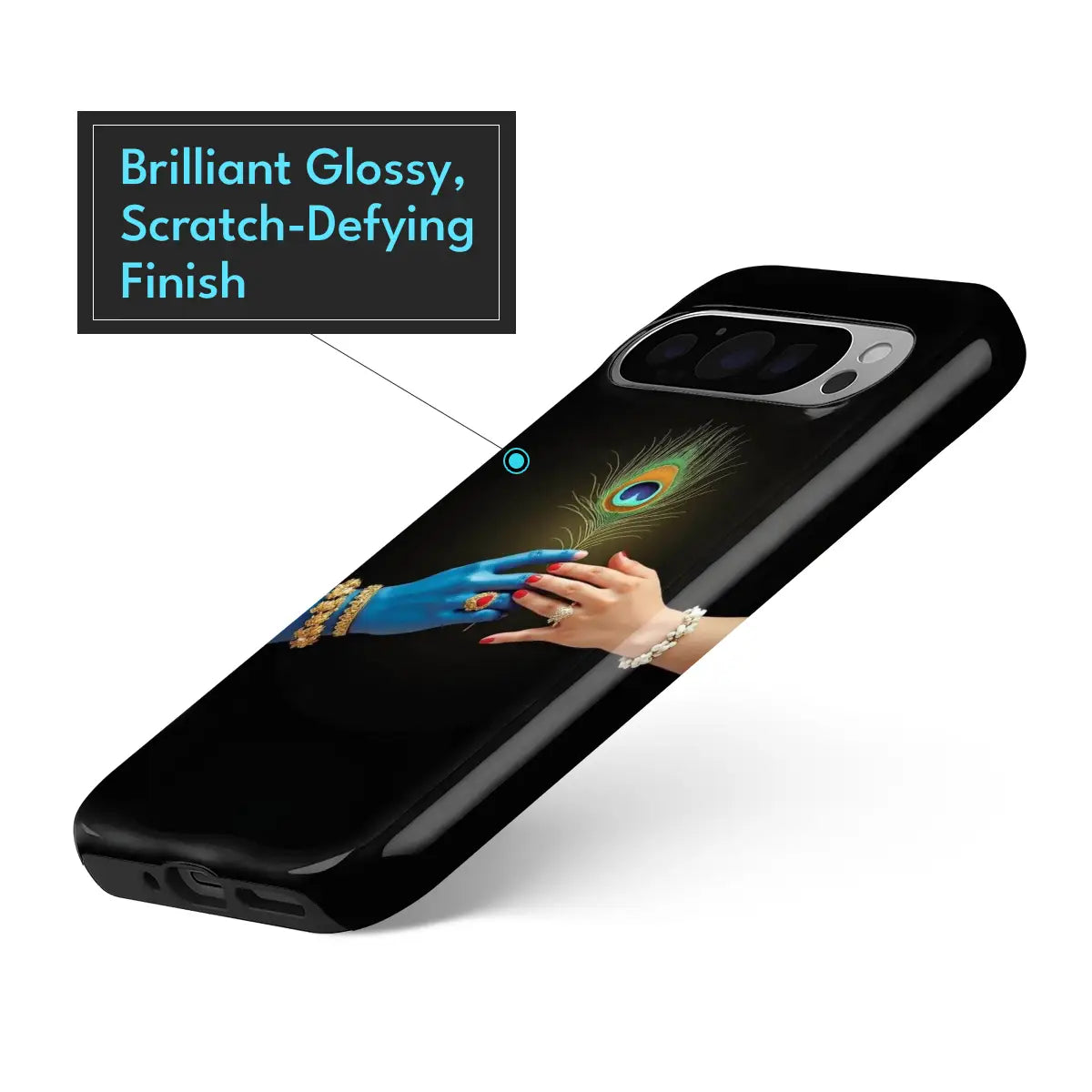 Elevate your device with the Sacred Peacock Bond, a masterpiece of spiritual artistry and modern luxury. This case features a high-gloss black finish framed in brilliant gold, centering on a poignant and symbolic interaction.