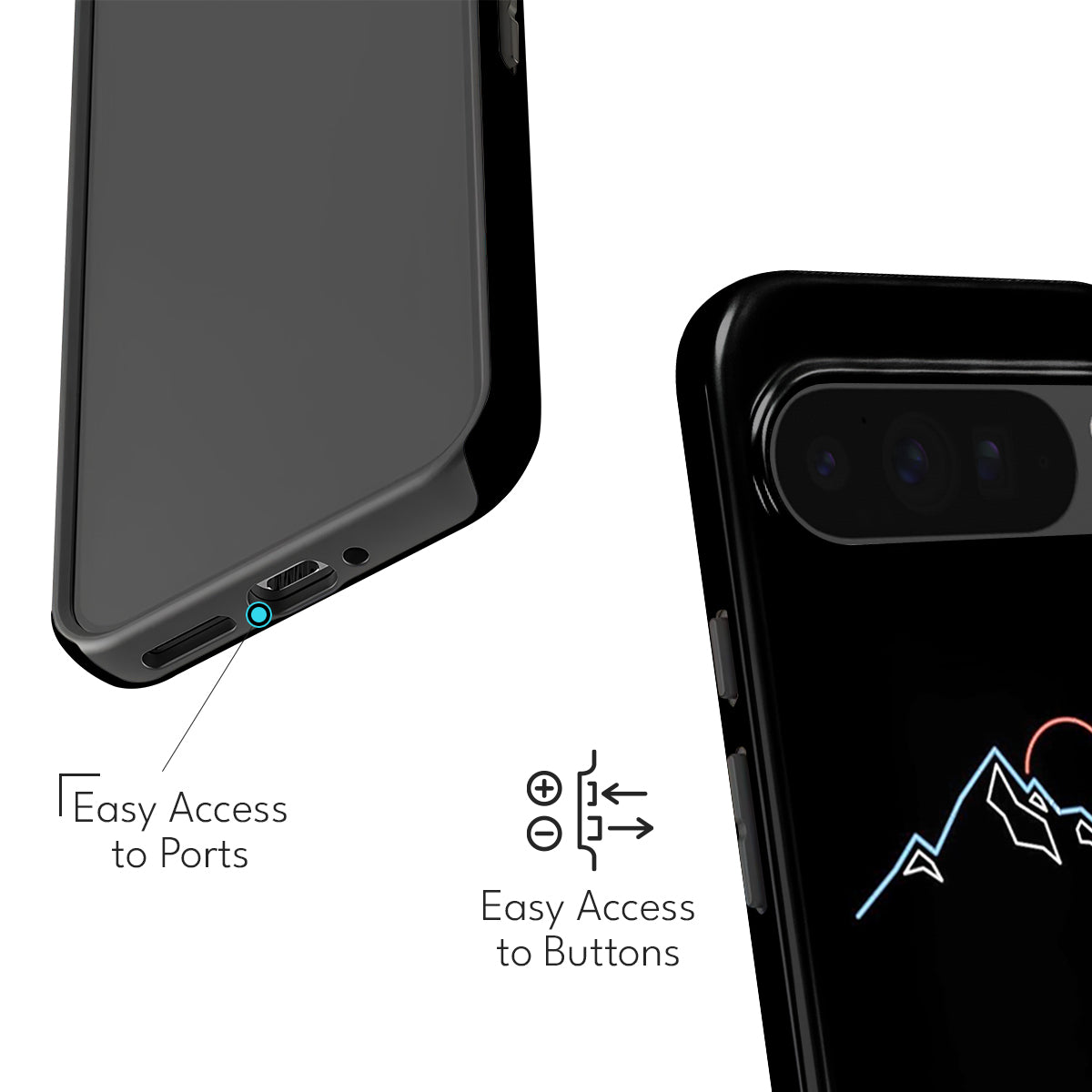 Find calm, clarity, and adventure in simplicity with the Sunrise Summit Case. Designed with a minimal yet striking line-art mountain range and a warm rising sun, this case captures the essence of new beginnings and endless horizons. The deep black background enhances the glowing mountain outline, giving your phone a sleek, modern, and artistic look.