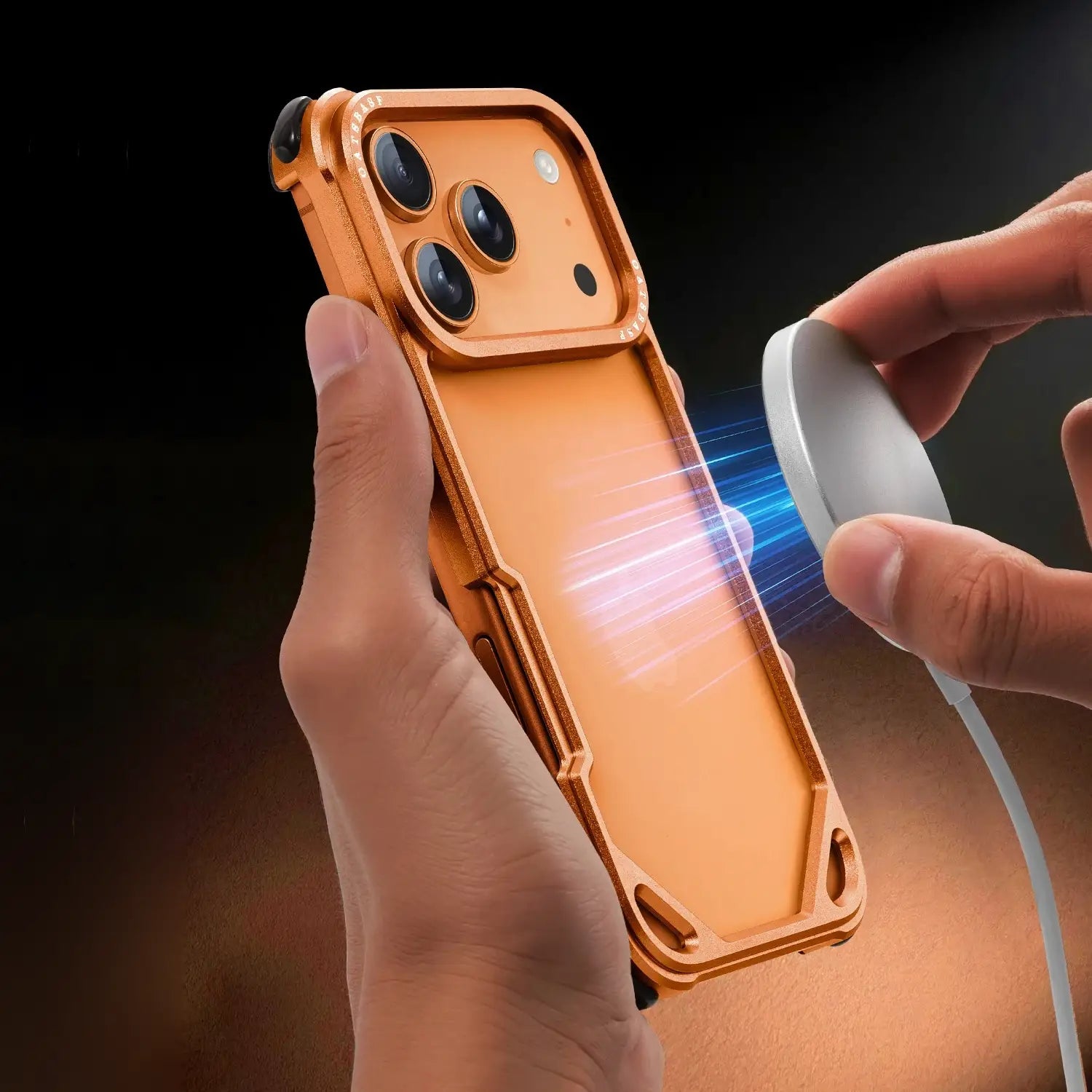 Built for drops and designed to stand out, the Metallic Frame Corner Guard Case combines an industrial metal-look frame with shock-absorbing corner bumpers and a matte, translucent back. The rigid shell disperses impact while the cushioned corners take the hit, keeping your phone safe from daily slips and bumps.