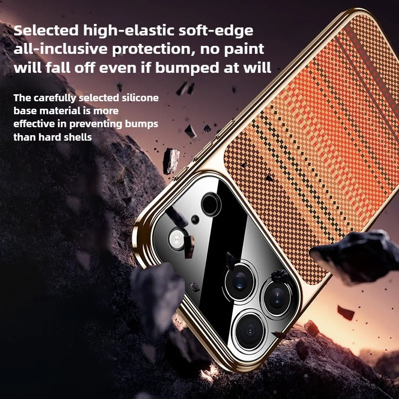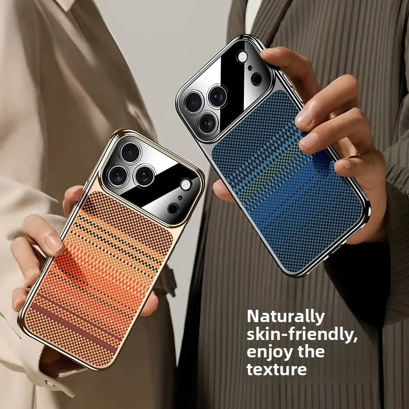 Experience the perfect fusion of sophistication and durability with the Retro Woven Stripes Electroplating Case. Designed for those who appreciate both luxury and performance, this case features a distinct woven-texture panel complemented by a polished metallic frame for a truly modern aesthetic.