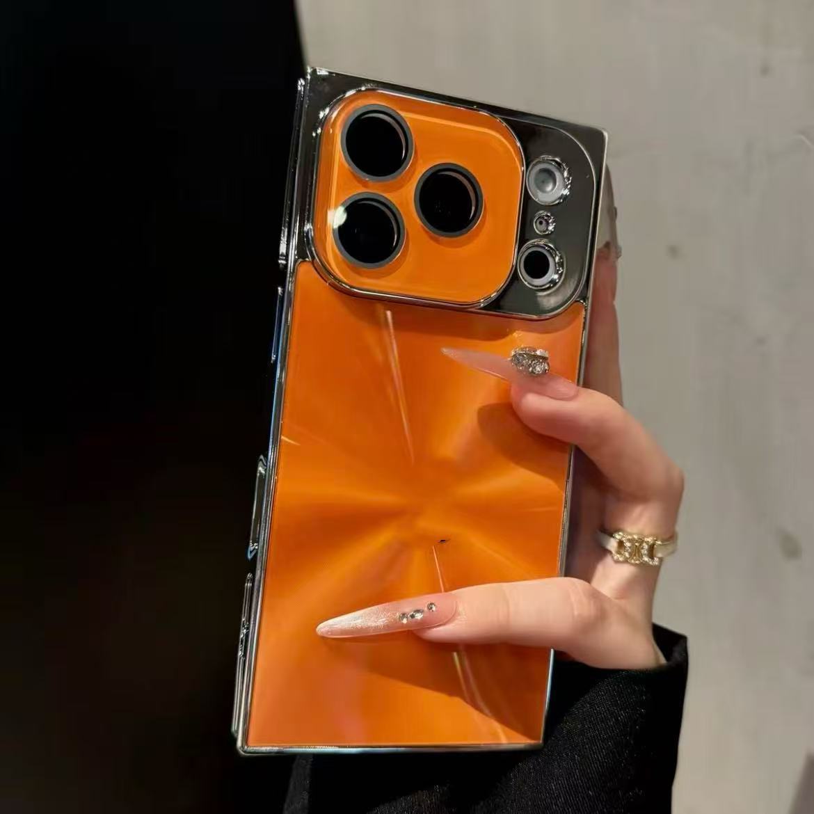 The Crimson Beam Reflective Armor Case combines bold elegance with futuristic protection. Designed with a high-gloss mirrored finish and a deep crimson-orange hue, it delivers a premium metallic aesthetic that instantly stands out.
