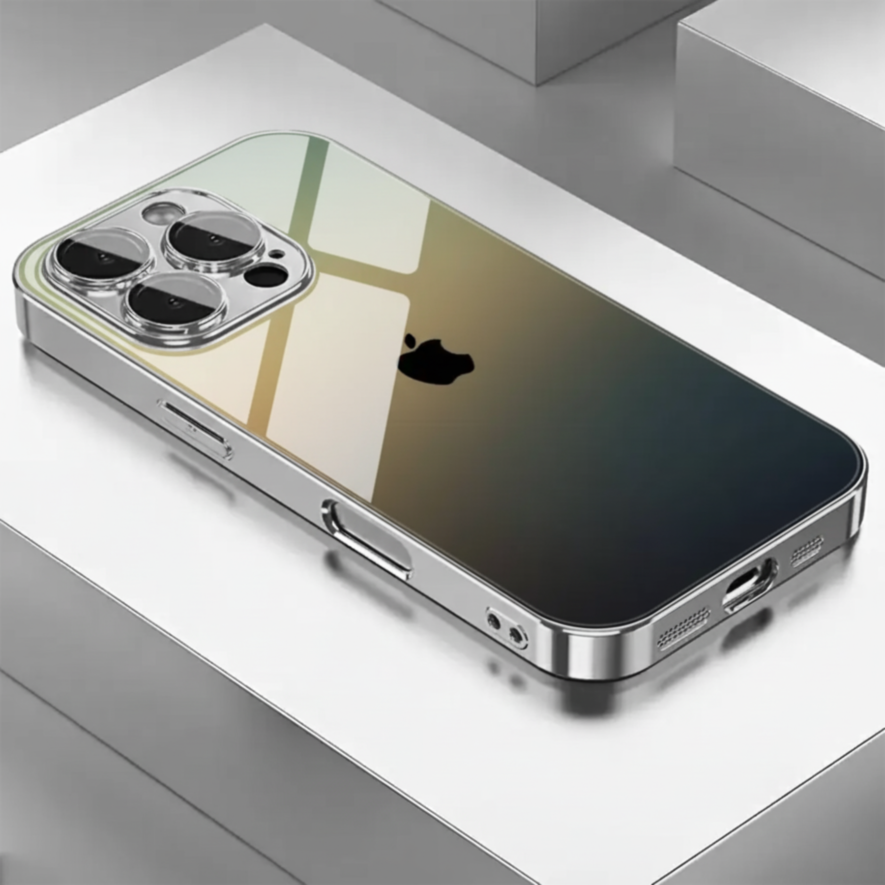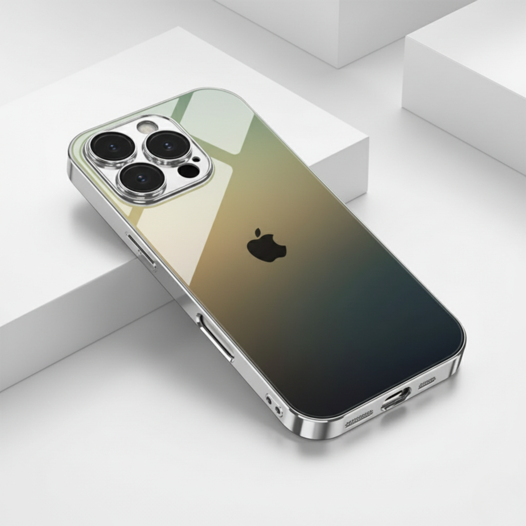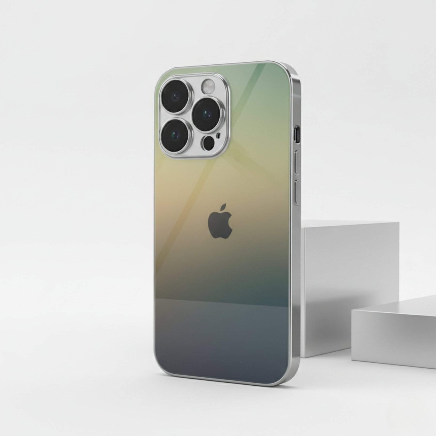 Discover the art of subtle brilliance with Aura Glass — a phone case that captures light, color, and elegance in perfect harmony. Its soft gradient glow transitions effortlessly through shades of gold, green, and grey, creating a calming mirror effect that shifts beautifully with every angle.