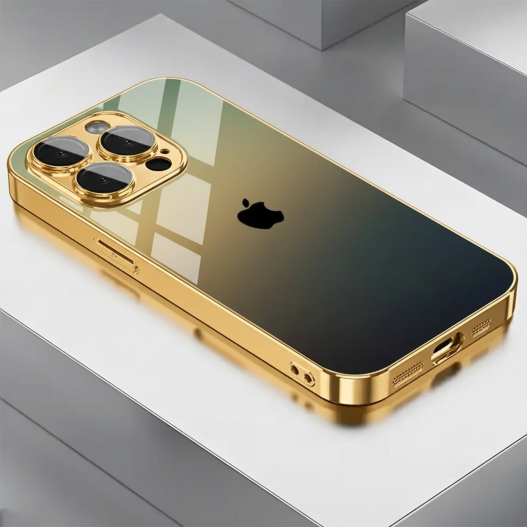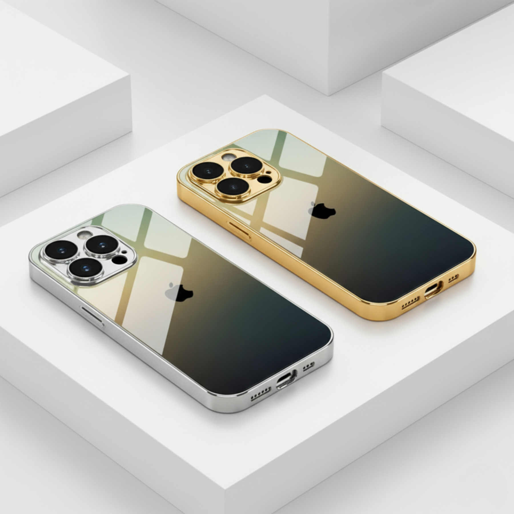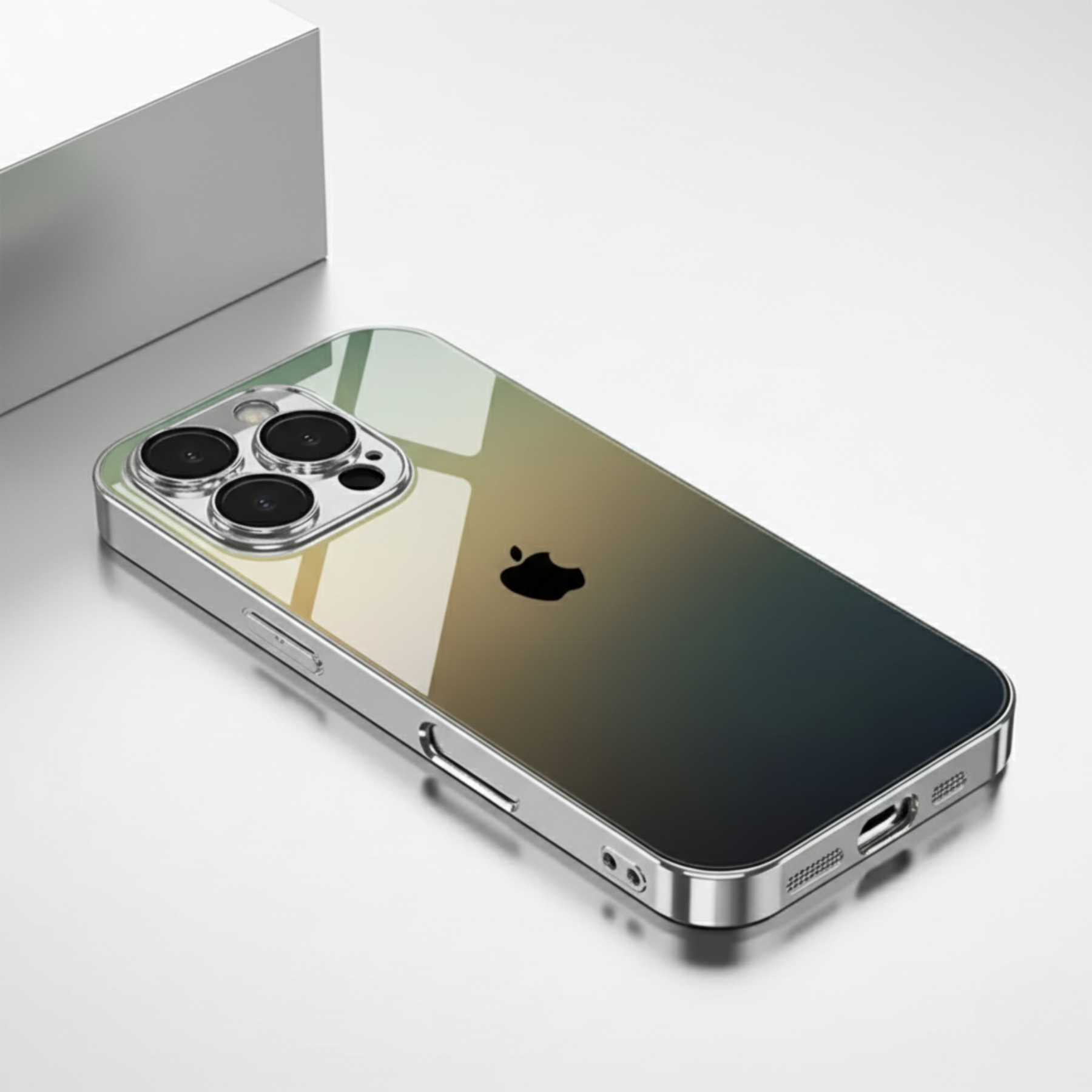 Discover the art of subtle brilliance with Aura Glass — a phone case that captures light, color, and elegance in perfect harmony. Its soft gradient glow transitions effortlessly through shades of gold, green, and grey, creating a calming mirror effect that shifts beautifully with every angle.