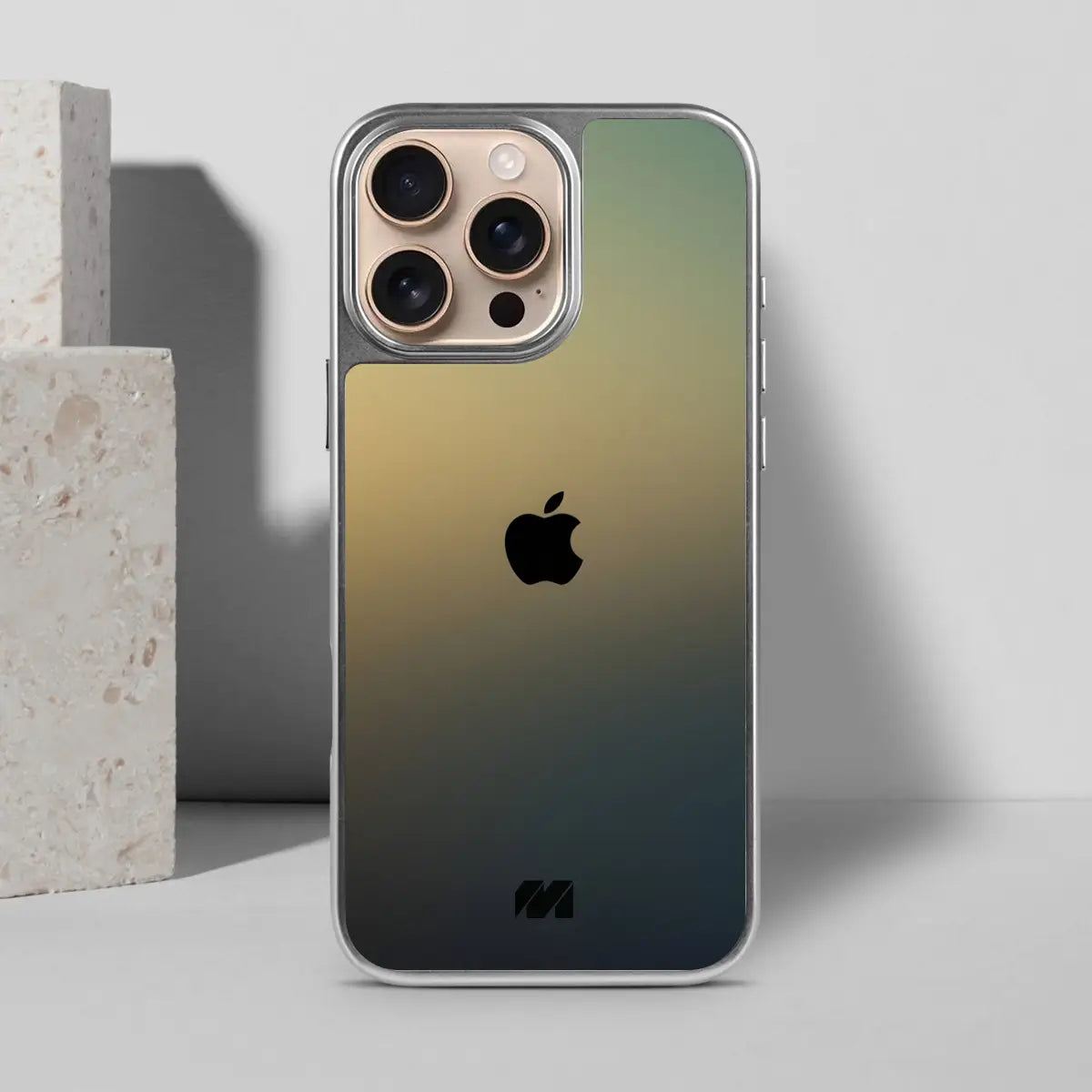 Discover the art of subtle brilliance with Aura Glass — a phone case that captures light, color, and elegance in perfect harmony. Its soft gradient glow transitions effortlessly through shades of gold, green, and grey, creating a calming mirror effect that shifts beautifully with every angle.