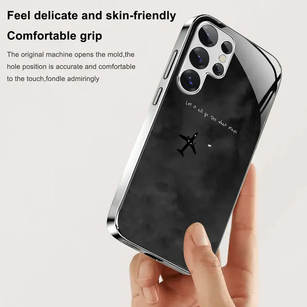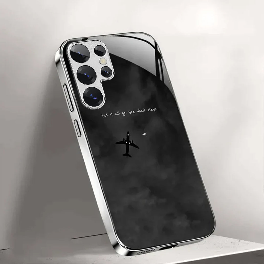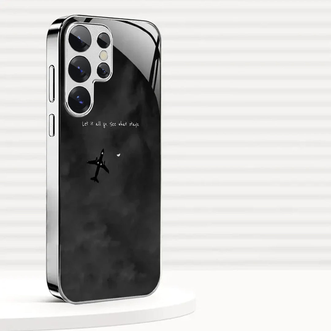 Drift beyond the noise with the Cloud Escape Case — a design that captures the quiet beauty of freedom and reflection. Featuring a sleek black sky, a solitary airplane, and the quote “Let it all go. See what stays.”, this case embodies peace, clarity, and the courage to let go.