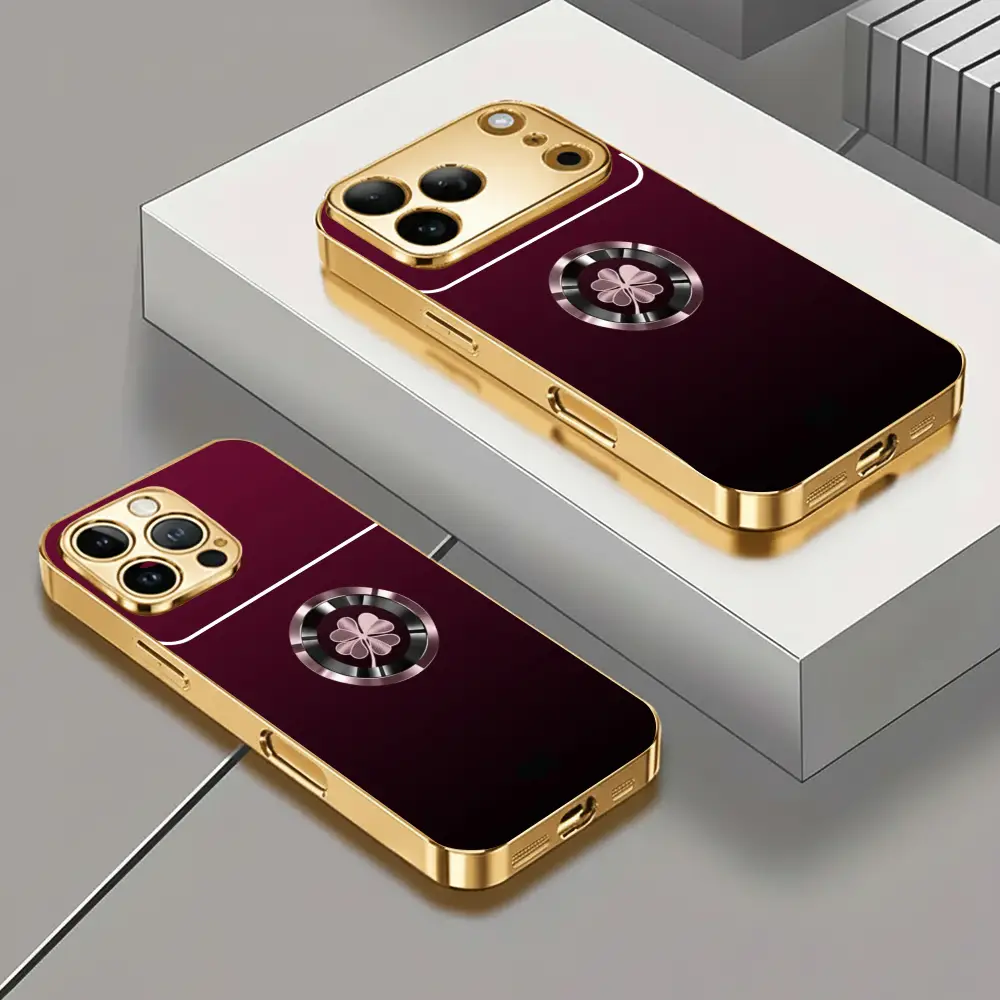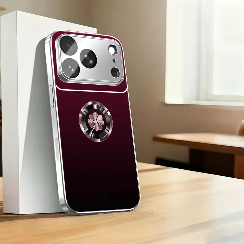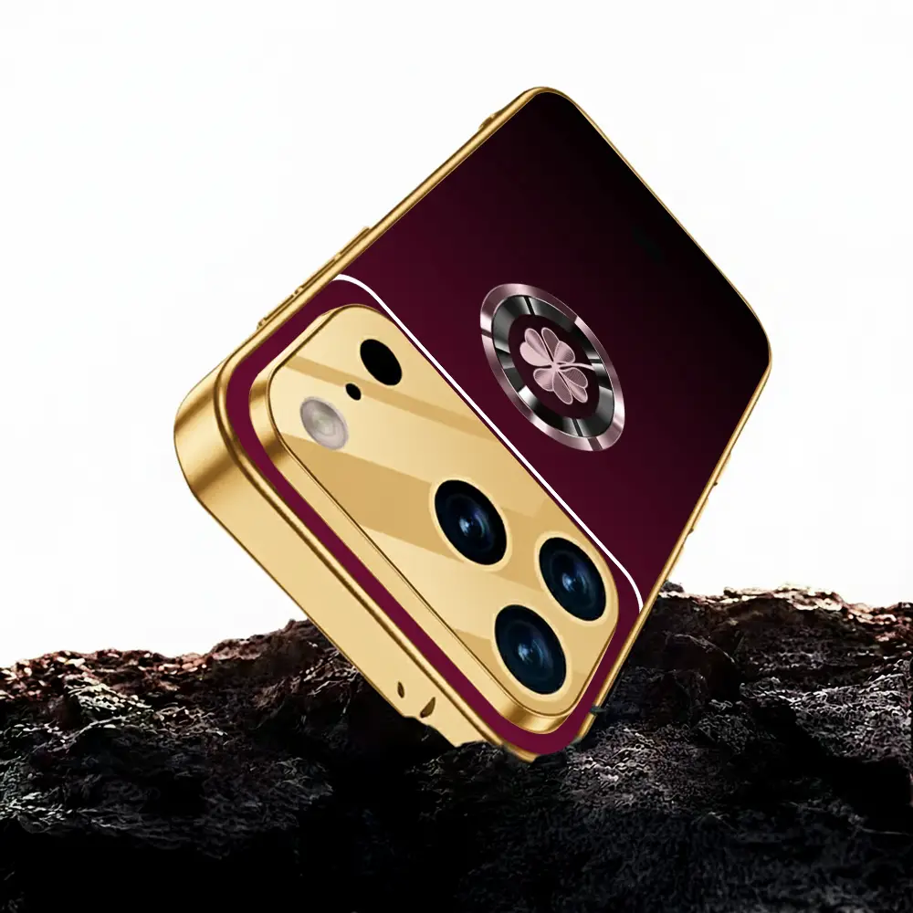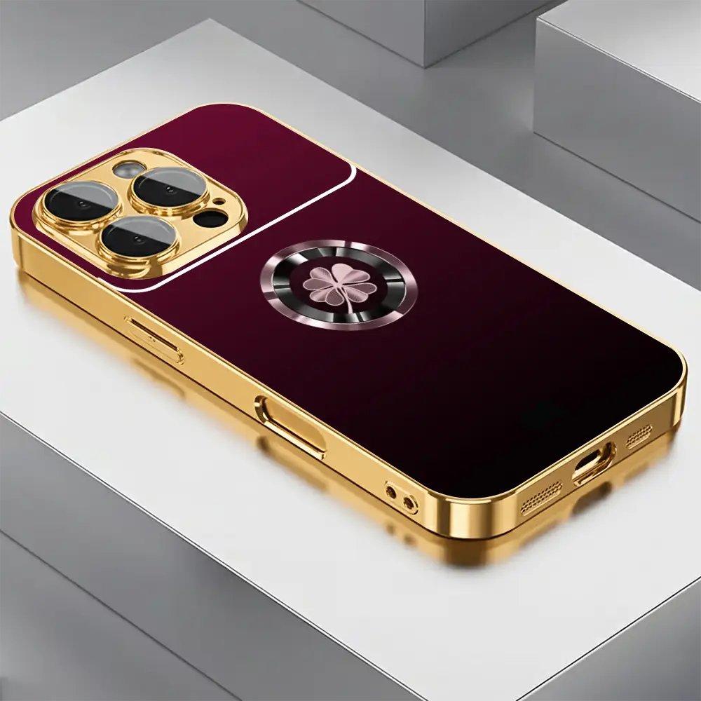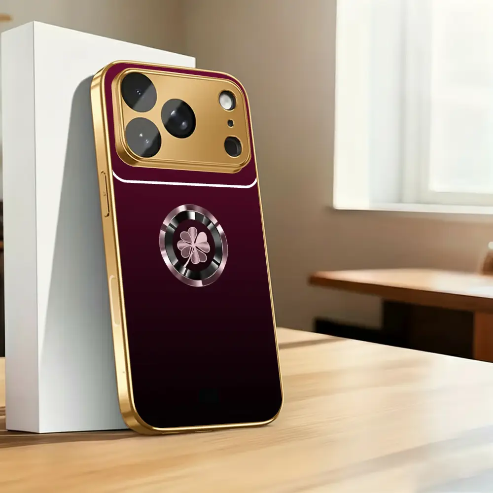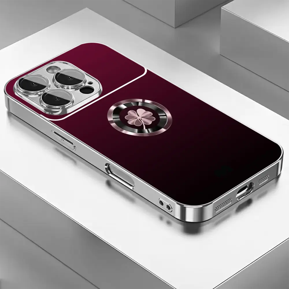 Embrace elegance and luck with Divine Clover — a case designed for those who believe in both style and destiny. Featuring a deep wine-maroon gradient paired with a polished metallic clover emblem, this case radiates sophistication with a touch of good fortune.