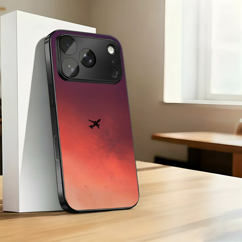 Ember Skyfly is a striking case that turns your phone into a sunset postcard. A jet-black plane silhouette glides across glowing ember clouds, blending wanderlust vibes with a sleek, glossy finish. Vivid color and polished details make it an irresistible travel-ready accessory.
