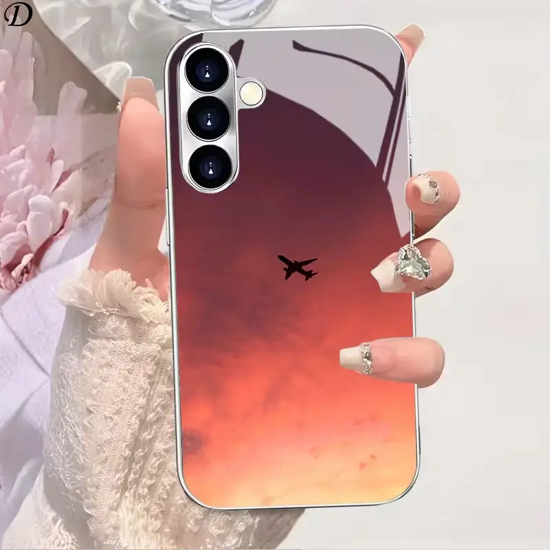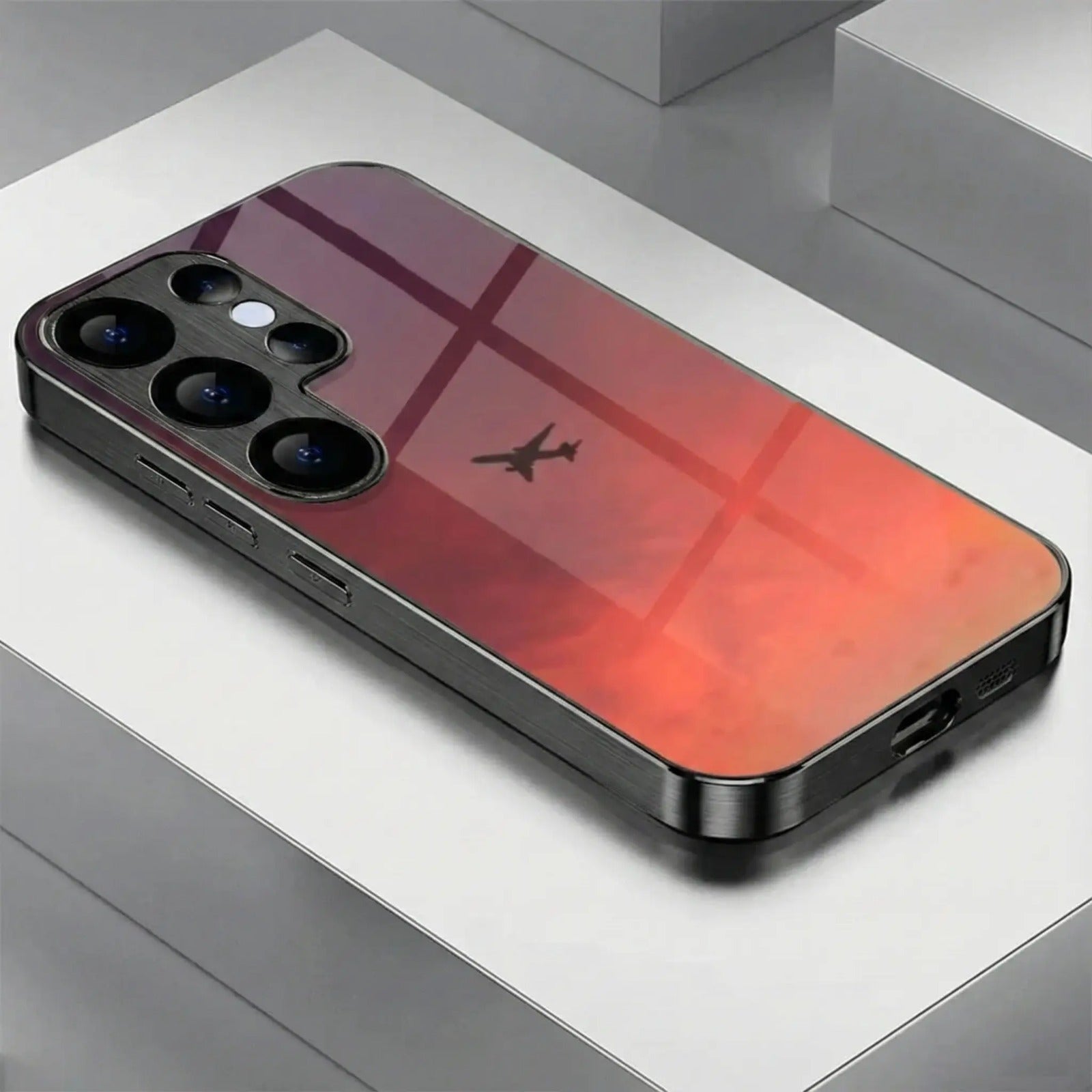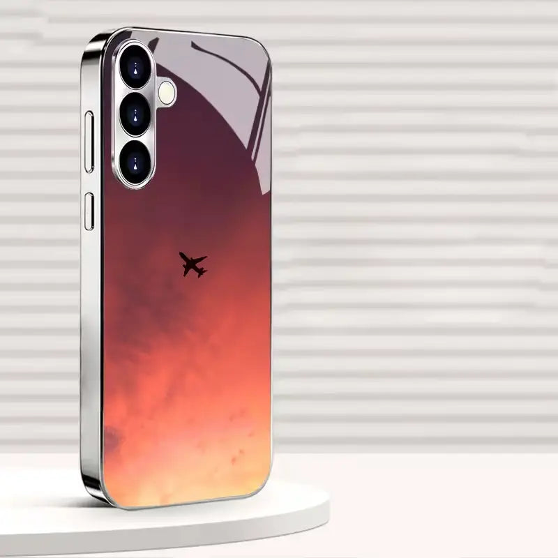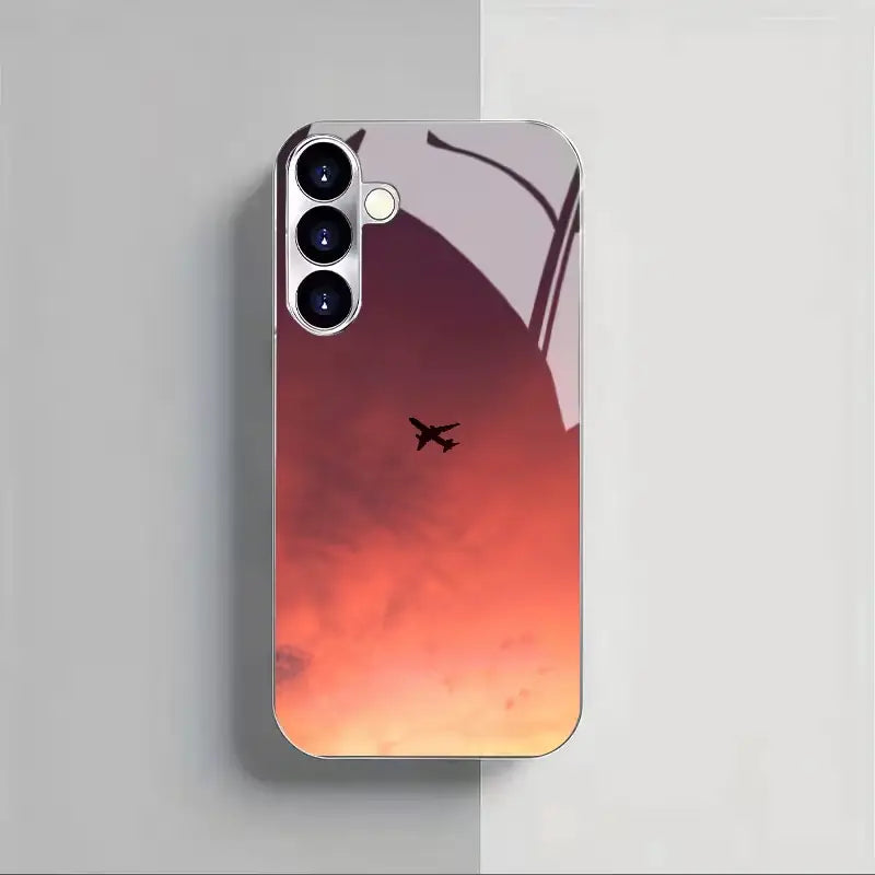 Ember Skyfly is a striking case that turns your phone into a sunset postcard. A jet-black plane silhouette glides across glowing ember clouds, blending wanderlust vibes with a sleek, glossy finish. Vivid color and polished details make it an irresistible travel-ready accessory.