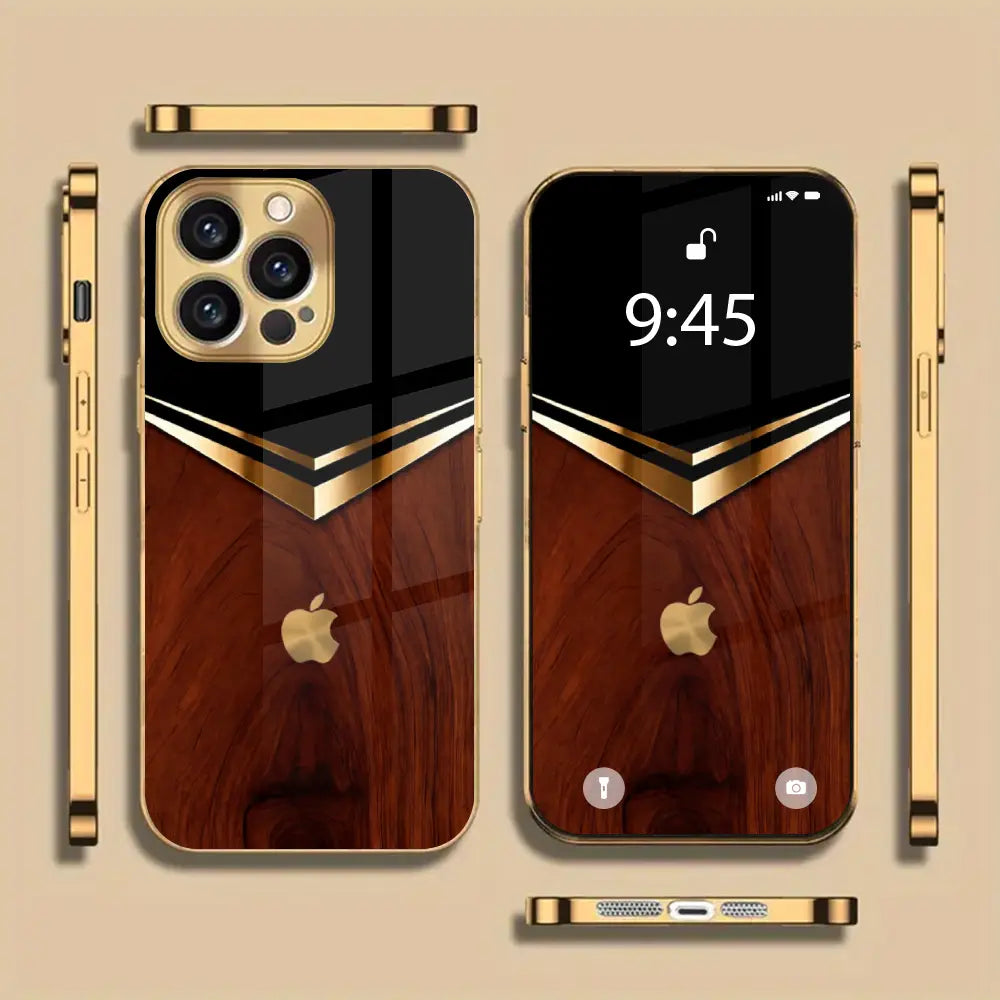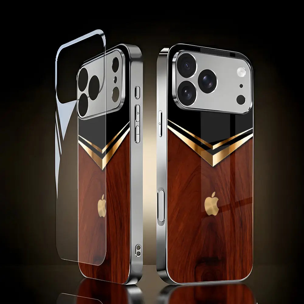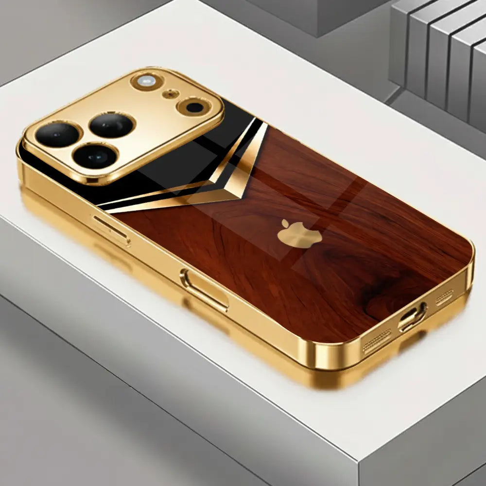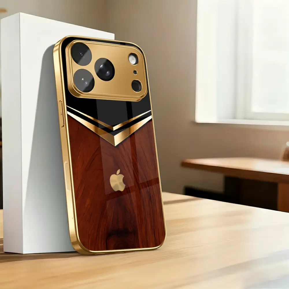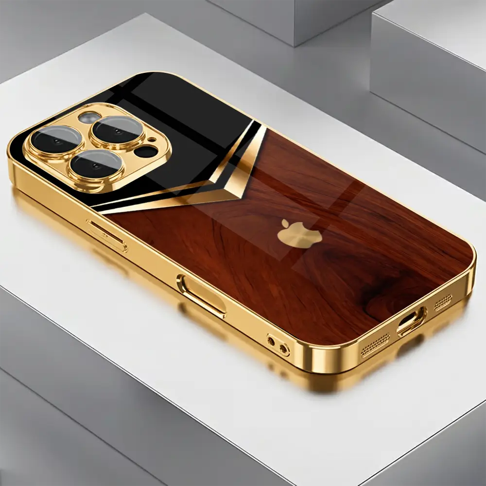 The Imperial Wood Case blends natural elegance with refined luxury. Featuring a rich wood-grain finish framed by polished gold accents, this design reflects timeless craftsmanship and modern sophistication.The smooth, glossy surface enhances the depth of the wood texture while offering a comfortable, premium feel in hand.