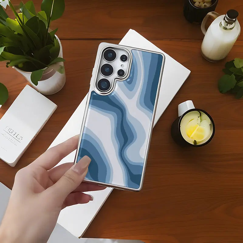 Ocean Drift captures the calm rhythm of the sea with smooth, flowing blue and white waves. Its minimalist design brings a refreshing, coastal touch to your everyday style — sleek, soothing, and effortlessly elegant.