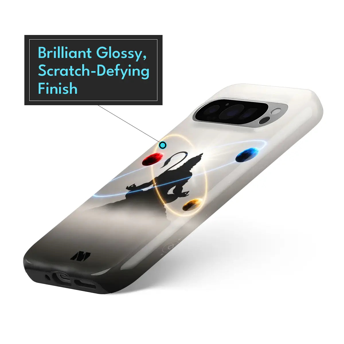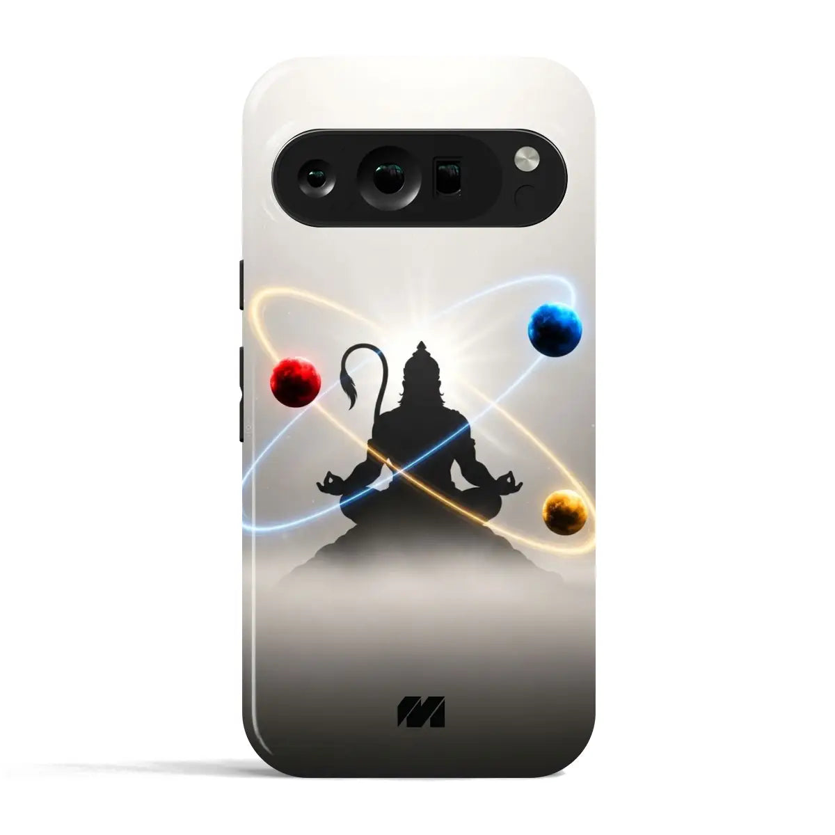 Quantum Yogi is where ancient stillness meets cosmic science. This case features a meditative silhouette suspended within orbital energy paths, symbolizing balance between mind, matter, and the universe. The minimalist light-to-shadow gradient enhances the celestial motion, giving the design a calm yet powerful presence—perfect for those who move through chaos with clarity.