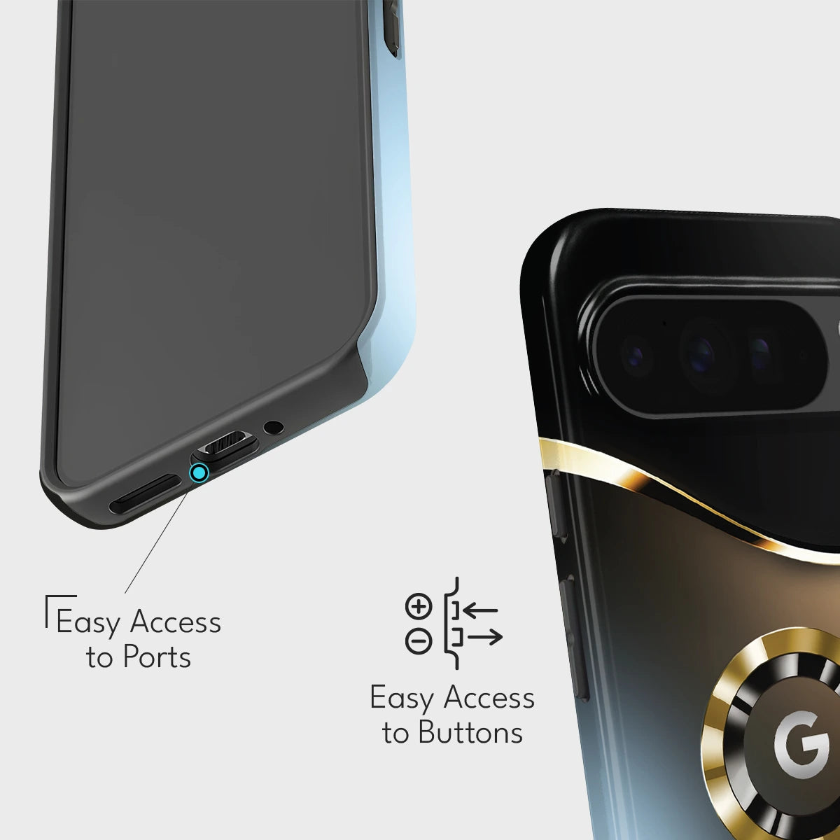 Make every glance feel premium. Royal Wave wraps your phone in a deep-black gloss with a flowing gold accent that catches light like liquid metal. A centered magnetic ring adds a refined focal point and snaps to compatible mounts and chargers, while the slim hybrid build keeps pockets light and daily bumps at bay. Smooth to the touch, bold to the eye—this is statement protection without the bulk.