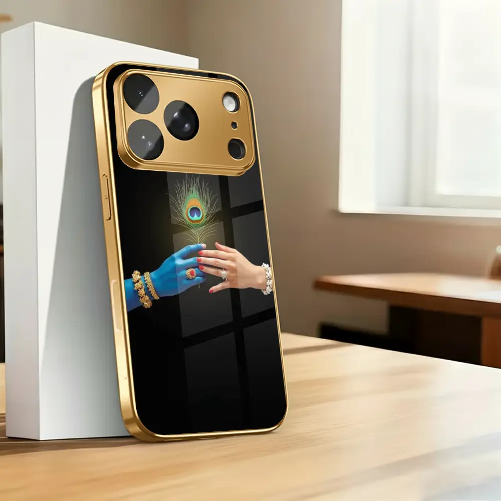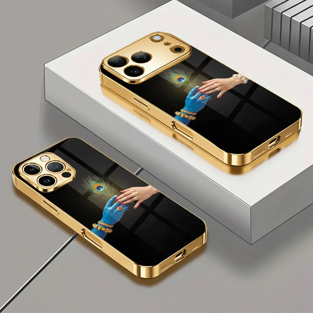 Elevate your device with the Sacred Peacock Bond, a masterpiece of spiritual artistry and modern luxury. This case features a high-gloss black finish framed in brilliant gold, centering on a poignant and symbolic interaction.
