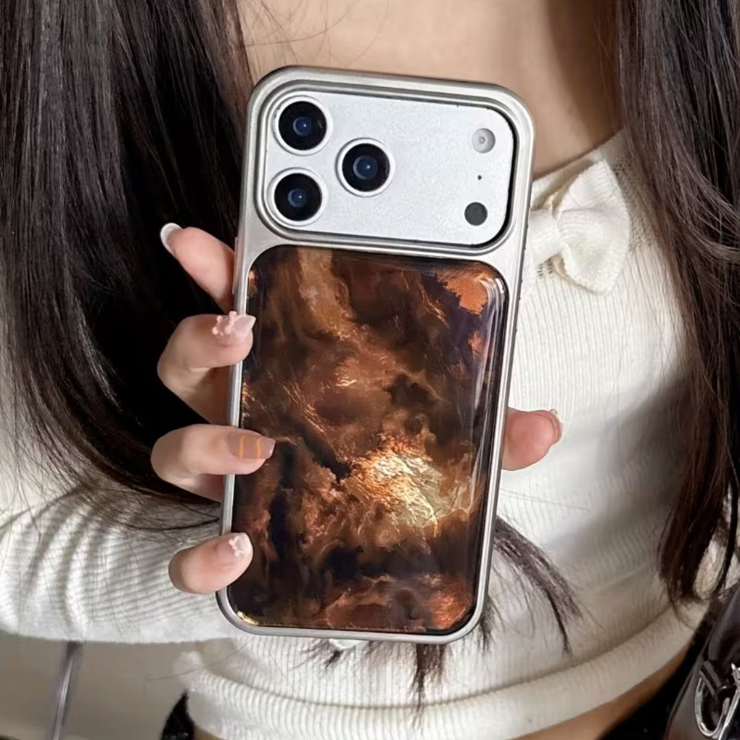 Smoked Storm blends deep charcoal clouds with molten amber tones to create a bold marble look inspired by drifting smoke and quiet power, perfect for adding a dramatic yet refined edge to your everyday style.