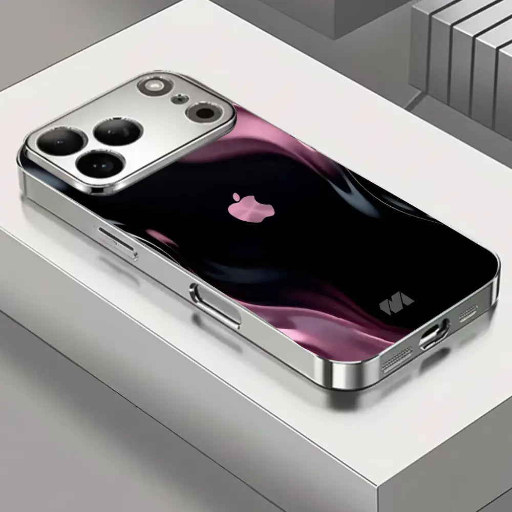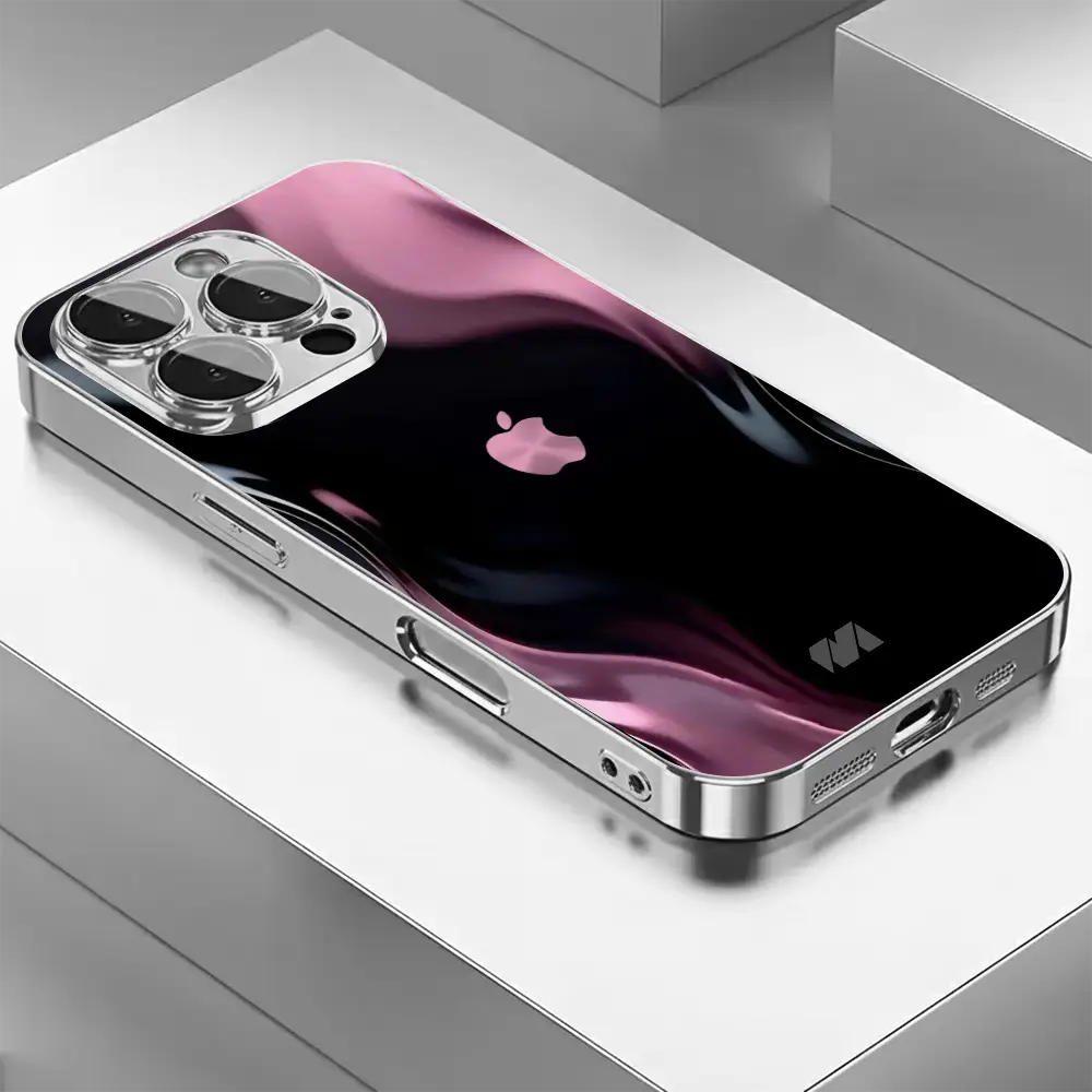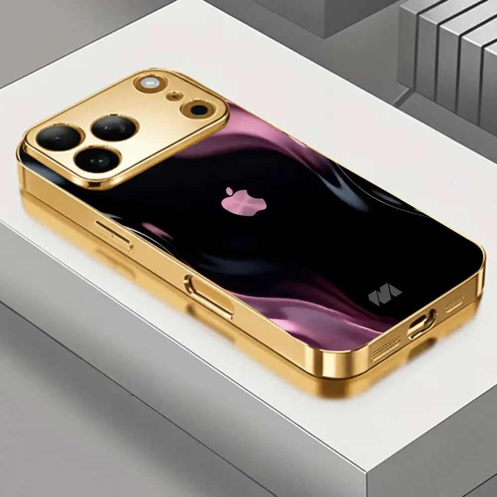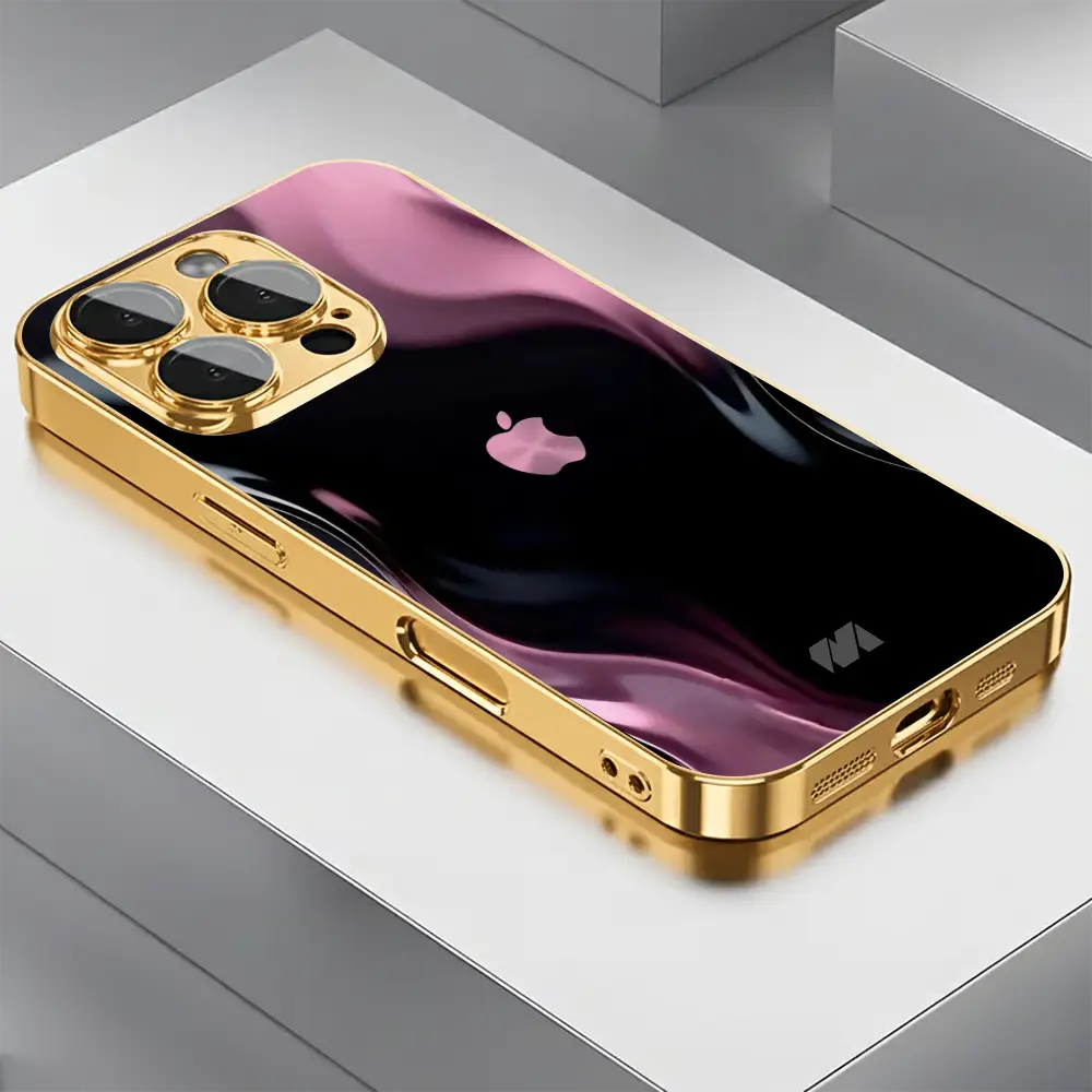 Sleek and Premium Velvet Swirl Case featuring a glossy fluid-marble pattern framed in a polished metallic border. It delivers a striking modern look while offering dependable everyday protection.