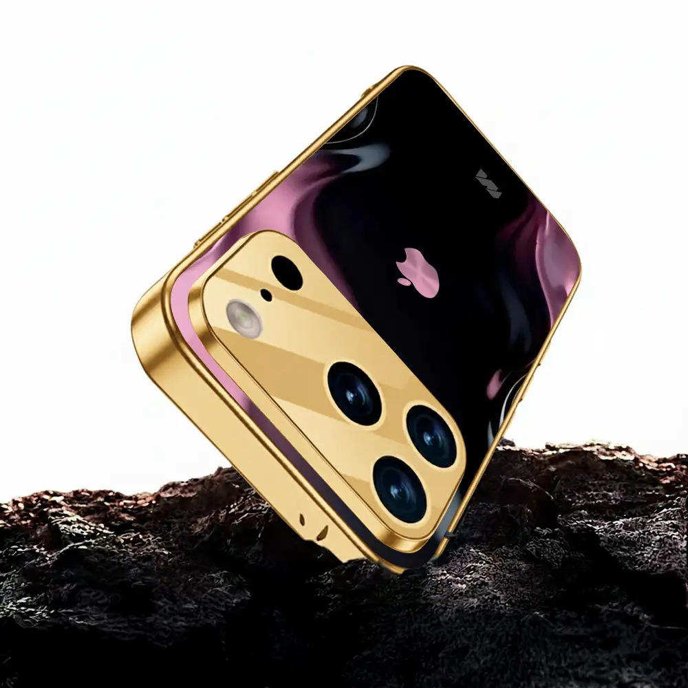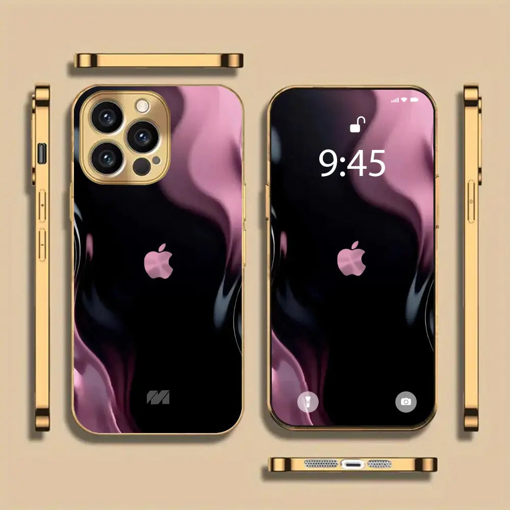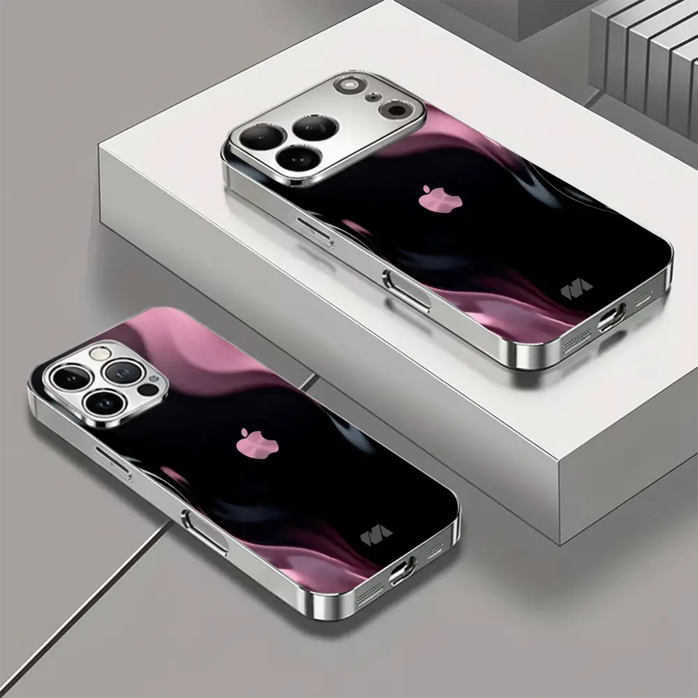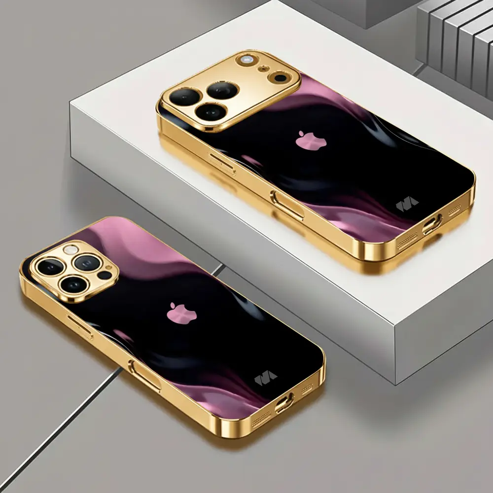 Sleek and Premium Velvet Swirl Case featuring a glossy fluid-marble pattern framed in a polished metallic border. It delivers a striking modern look while offering dependable everyday protection.