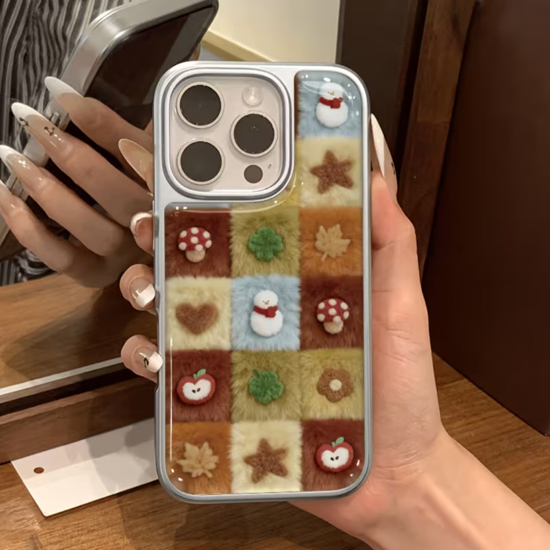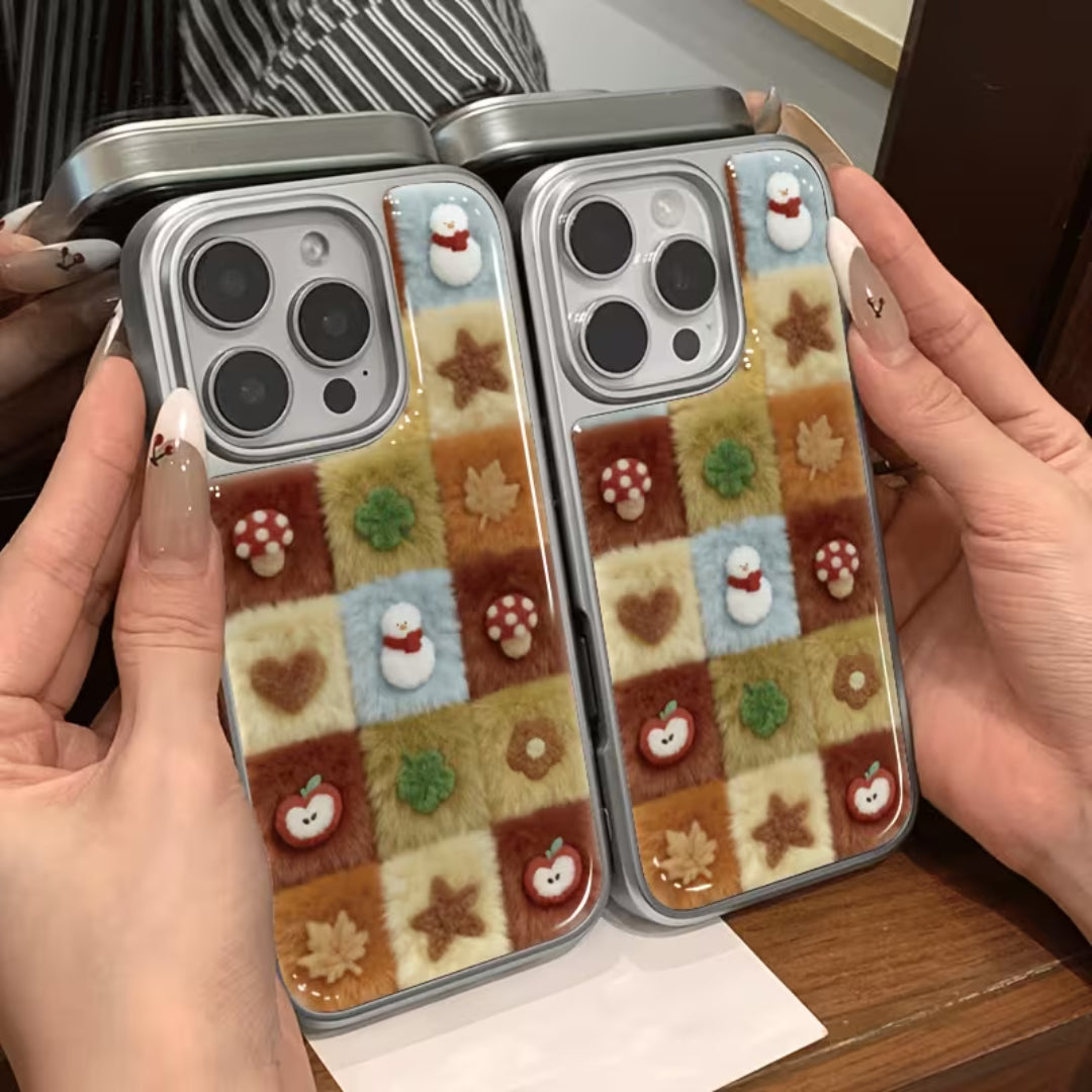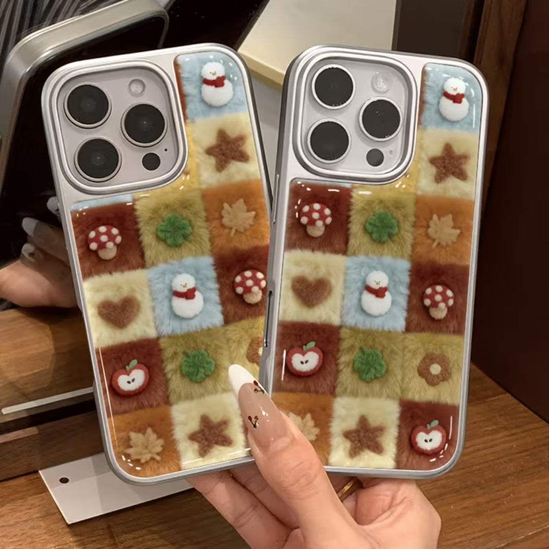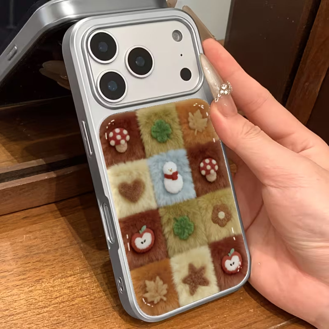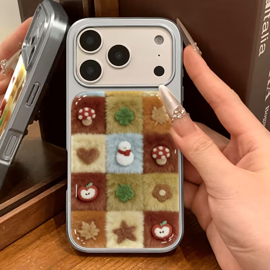 Soft, nostalgic, and irresistibly cozy—Woodland Quilt brings the charm of autumn straight to your hands. Featuring a plush patchwork design inspired by woodland textures, cozy knits, and handmade quilts, this case is detailed with adorable forest motifs like mushrooms, leaves, apples, and stars. The fuzzy, tactile surface adds warmth and comfort, making your phone feel as inviting as it looks.