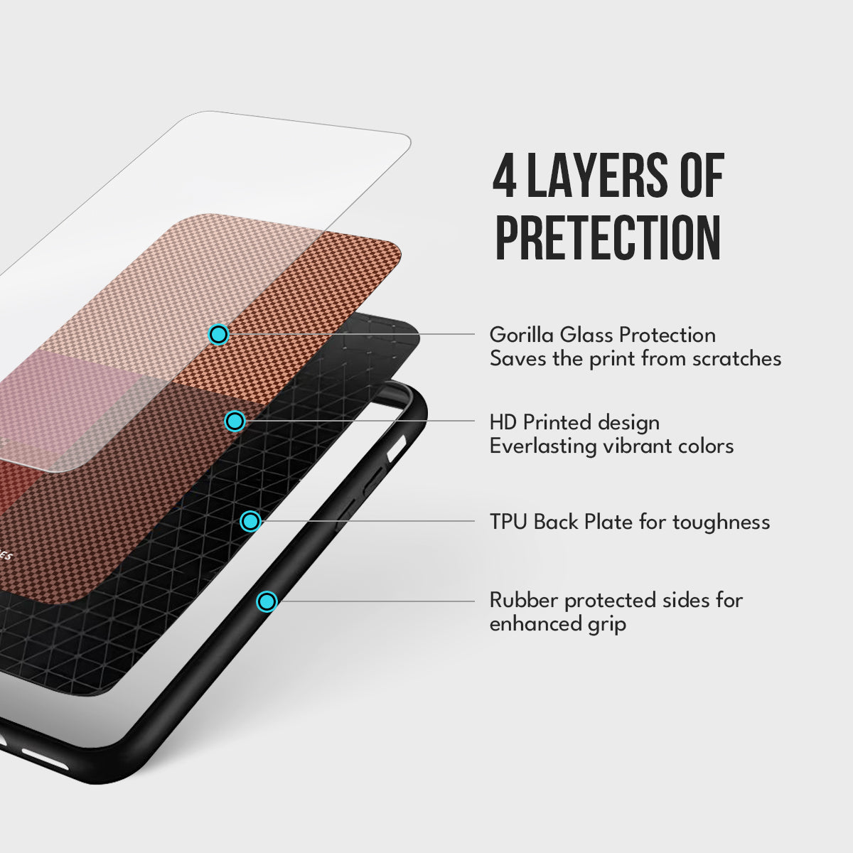 - TPU Back Plate – Tough yet flexible layer for shock absorption.