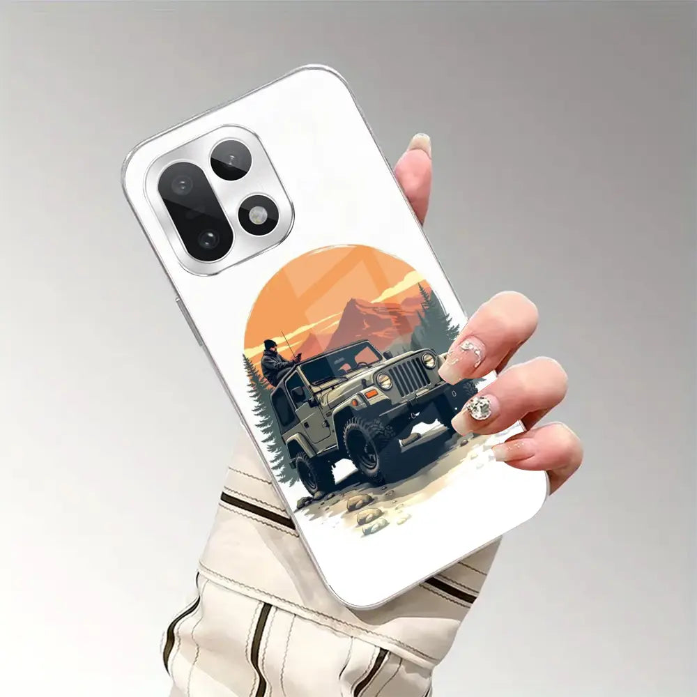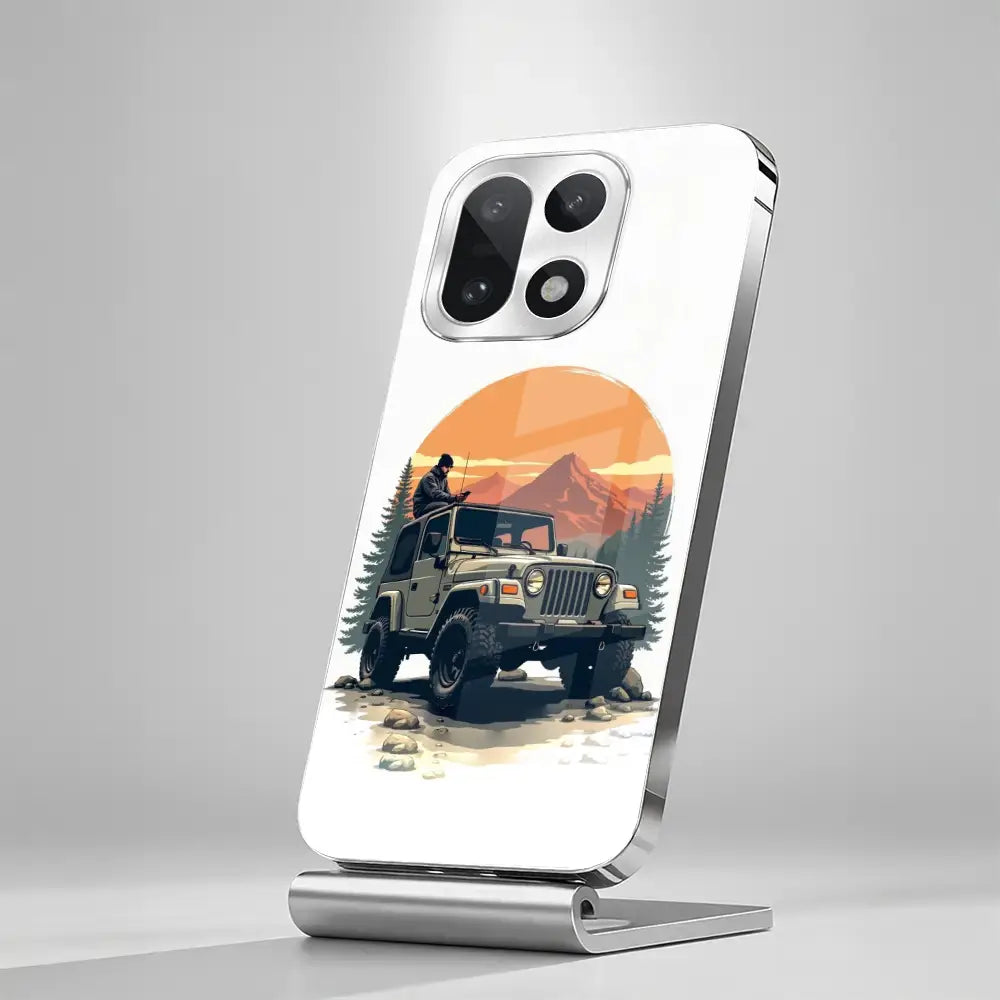 Desert Roamer is built for those who chase horizons. Featuring a rugged off-road scene set against a warm desert sunset, this case captures the spirit of open trails and untamed landscapes. The clean white back and polished gold frame add a refined contrast—balancing raw adventure with modern luxury.