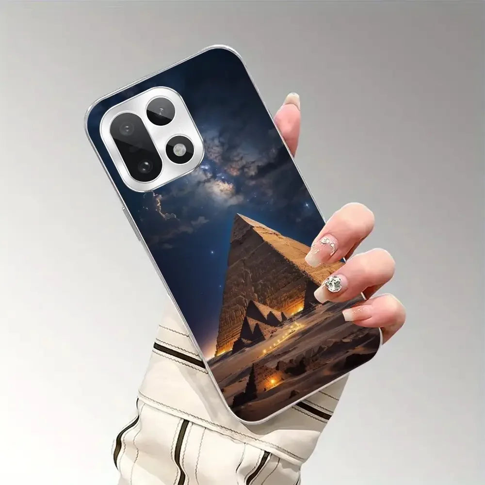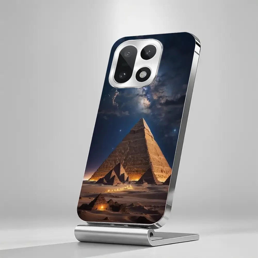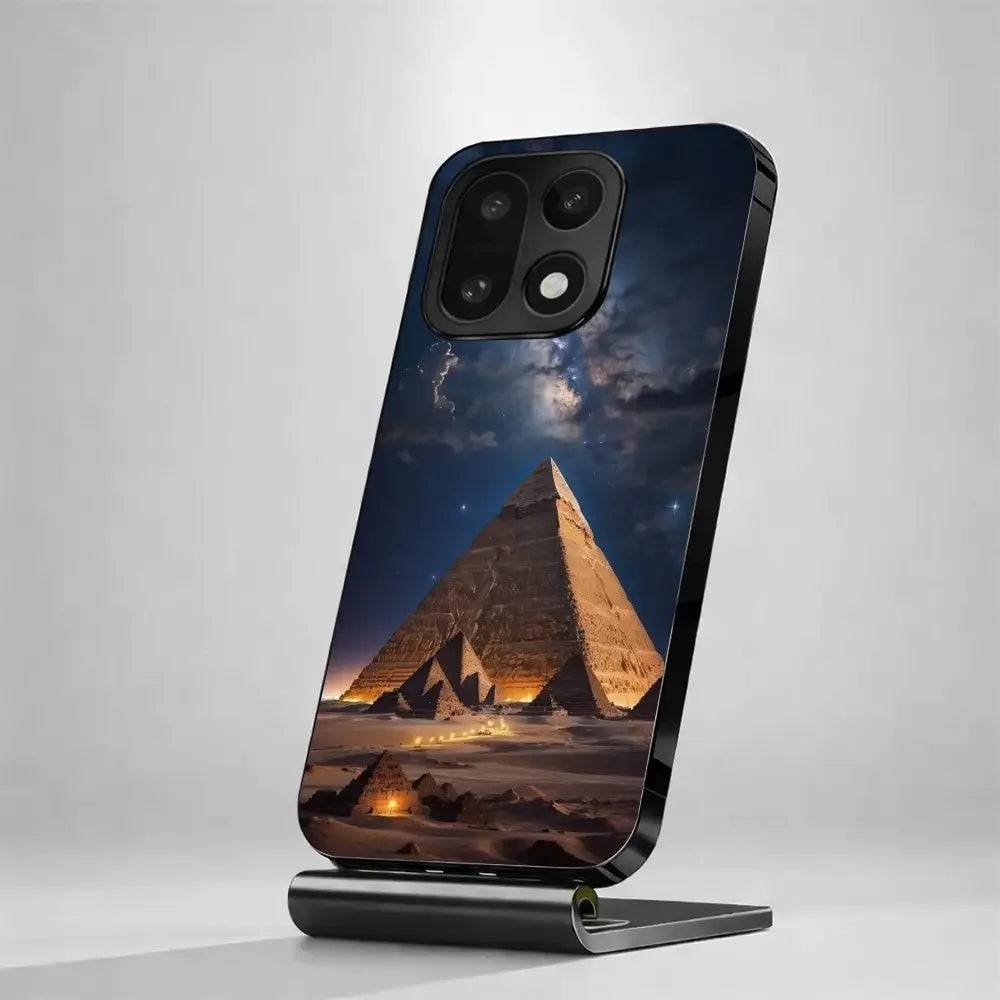 Giza Eclipse captures the mystery of ancient pyramids under a glowing night sky, blending timeless history with modern luxury. The deep celestial tones and golden frame create a bold, royal look that instantly elevates your phone’s style. Designed for those who love powerful aesthetics and elegant details, this case turns your device into a statement of class, culture, and confidence.