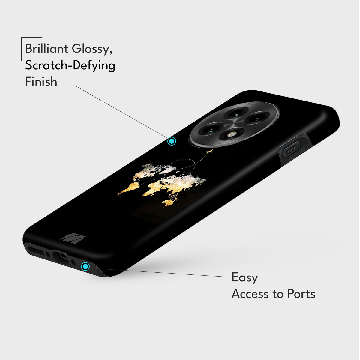 Set your spirit free and carry the world with you. The Planet Journey case features a stunning gold-accented world map with a soaring airplane silhouette, symbolizing freedom, ambition, and endless exploration.The deep black background highlights the glowing continents, creating a classy, travel-inspired aesthetic that stands out effortlessly.