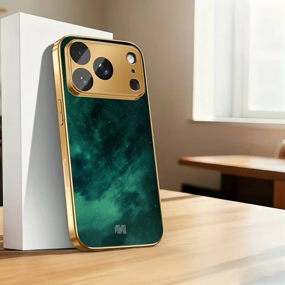 Immerse your phone in elegance with the Emerald Sky Reflection Case, a perfect fusion of sophistication and celestial charm. Featuring a mesmerizing emerald-green glass finish that mirrors the hues of a twilight sky, this case brings a serene yet luxurious touch to your device.