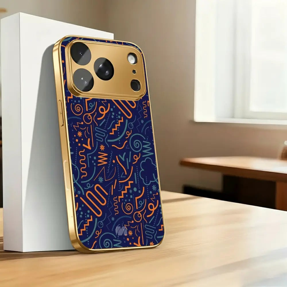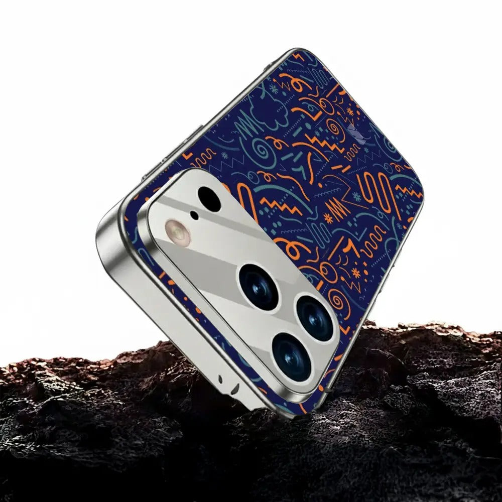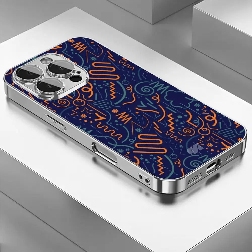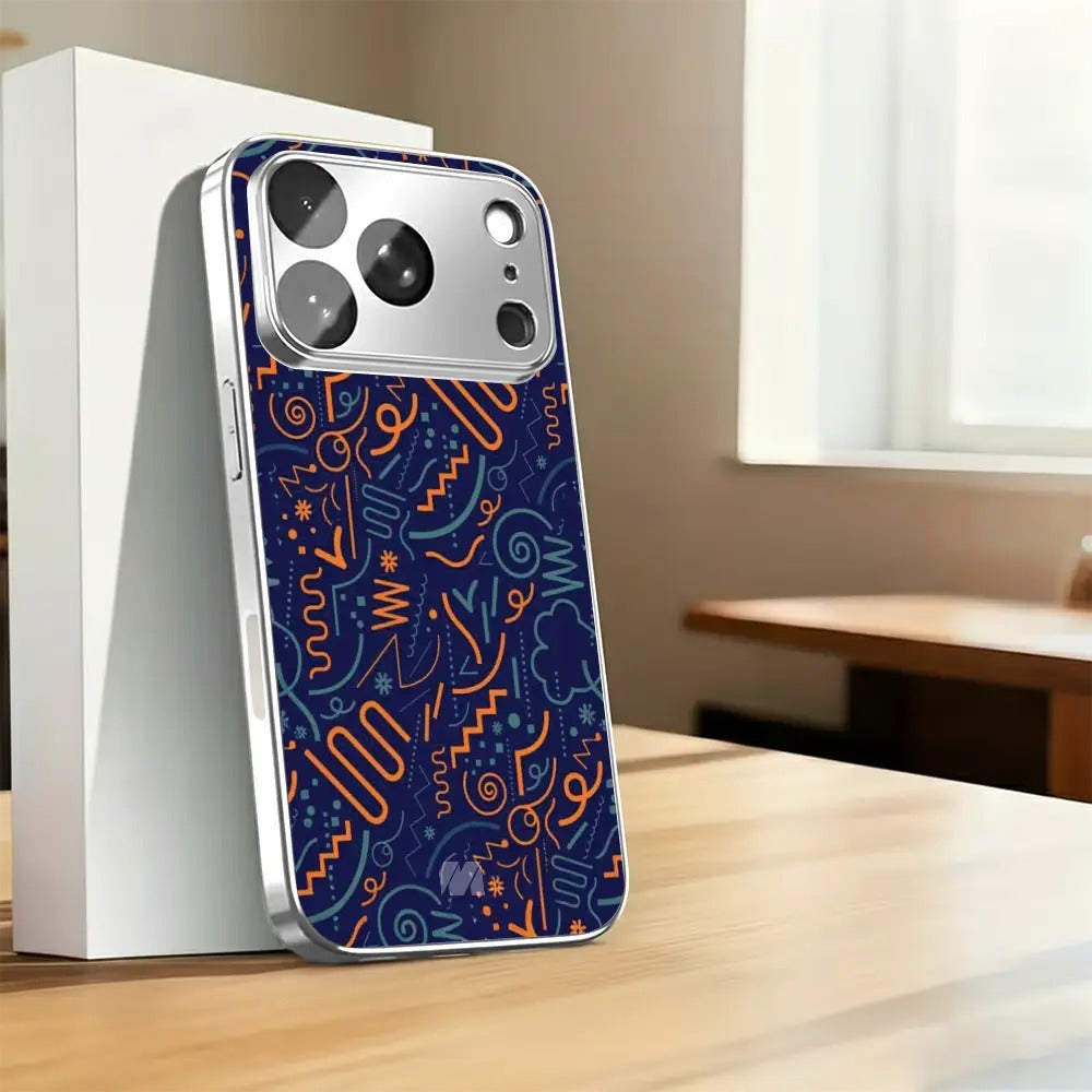 Dive into the rhythm of the night with Nocturne Flux — a design that pulses with electric energy and midnight mystery. Its deep navy base sets the stage for a vibrant dance of orange and teal lines, flowing like soundwaves through the dark.